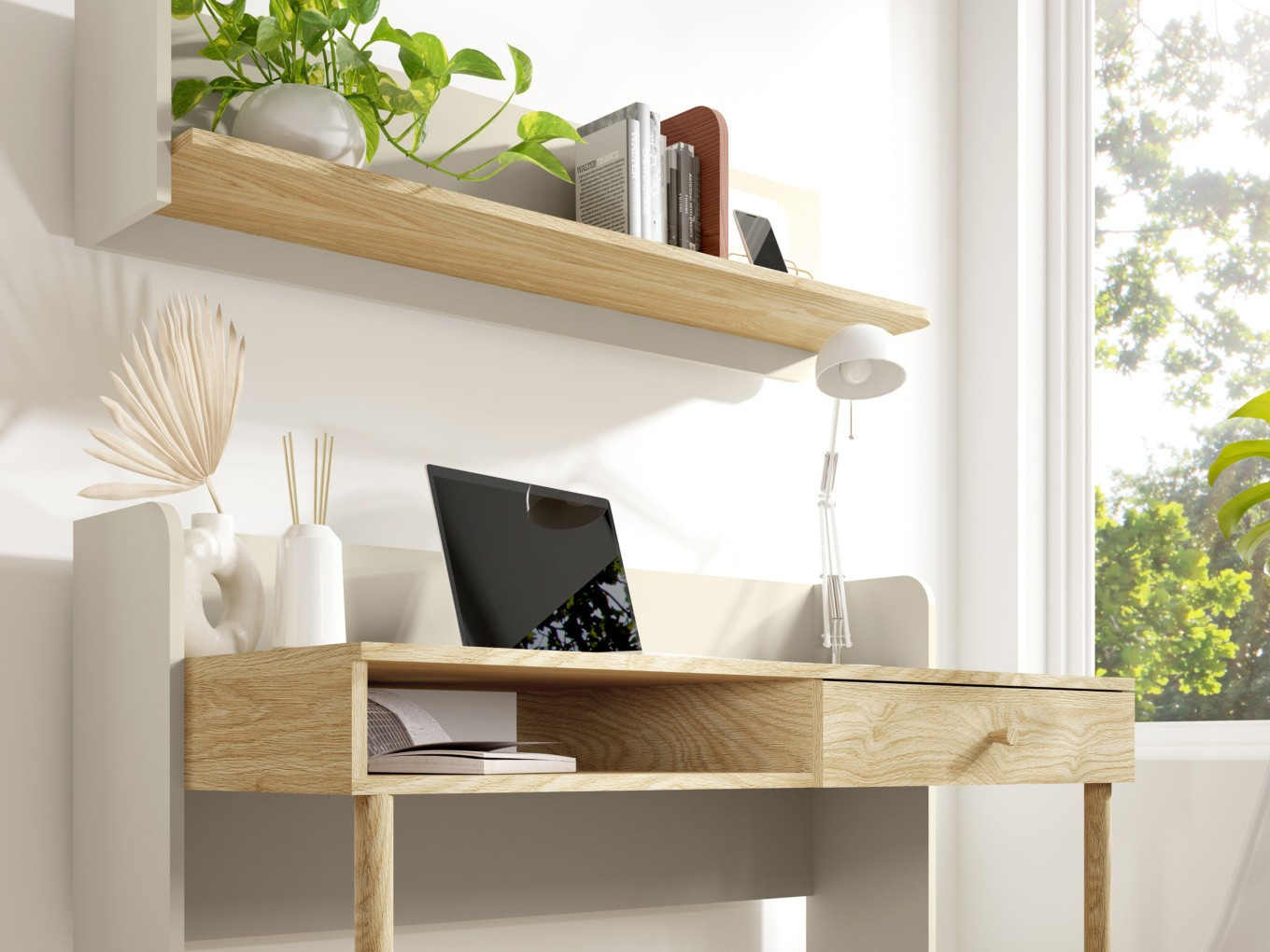 Písací stôl Yuva R11 je vyrobený z kvalitného lamina v krásnom dekore prírodného duba a šedobéžovej farby. Laminát je odolný a určite oceníte jeho jednoduchú údržbu. Stôl je dodávaný v demonte. Súčasťou balenia je montážny návod vrátane všetkých spojovacích prvkov.