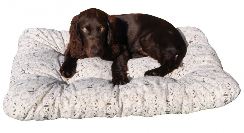 Obojstranná podložka pre psa. | Podložka je vyplnená penovou drvinou. Rozmer podložky je 60x80 cm. Hrúbka podložky je približne 10 cm.