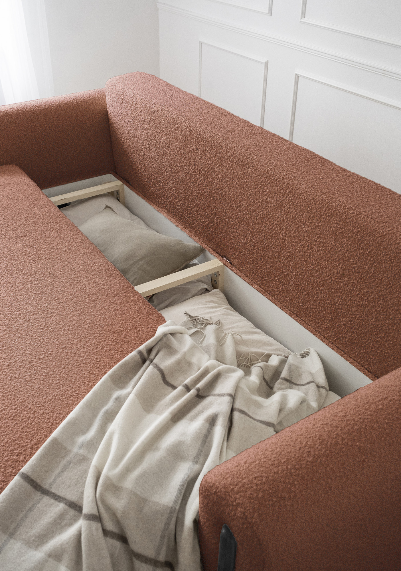 Táto pohovka nie je len o vzhľade, ale aj o funkčnosti. Vďaka možnosti rozkladania sa ľahko premení na pohodlné lôžko s plochou na spanie 200 x 146 cm, čo je ideálne pre hostí alebo pre tých, ktorí si radi doprajú popoludňajší odpočinok. Navyše je vybavená praktickým úložným priestorom, ktorý je ideálny na uschovanie posteľnej bielizne, vankúšov alebo diek.