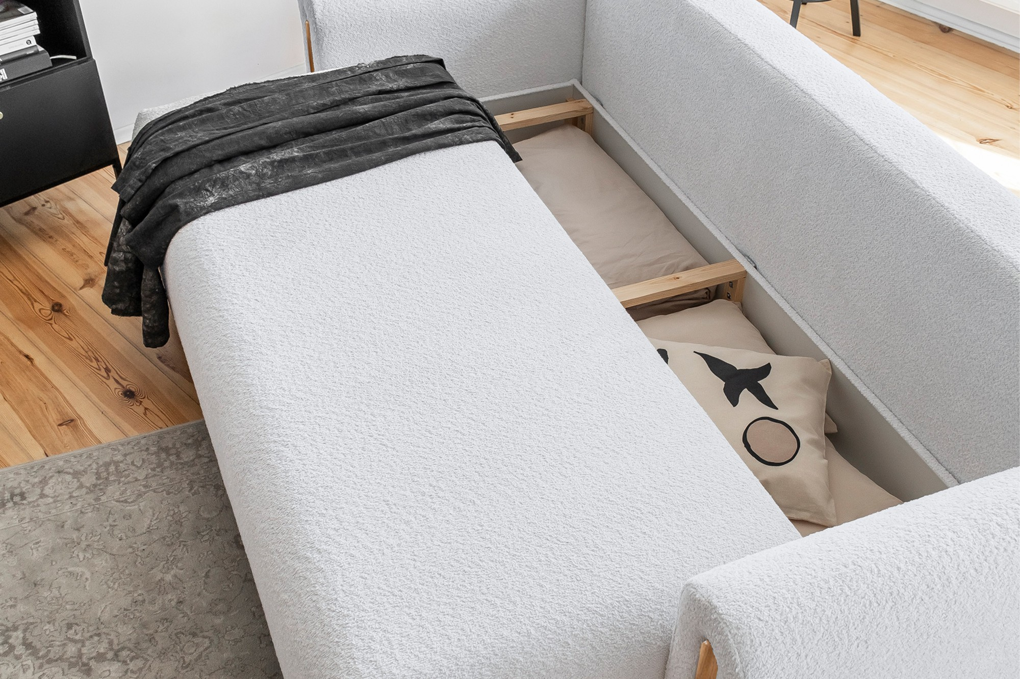 Táto pohovka nie je len o vzhľade, ale aj o funkčnosti. Vďaka možnosti rozkladania sa ľahko premení na pohodlné lôžko s plochou na spanie 200 x 146 cm, čo je ideálne pre hostí alebo pre tých, ktorí si radi doprajú popoludňajší odpočinok. Navyše je vybavená praktickým úložným priestorom, ktorý je ideálny na uschovanie posteľnej bielizne, vankúšov alebo diek.