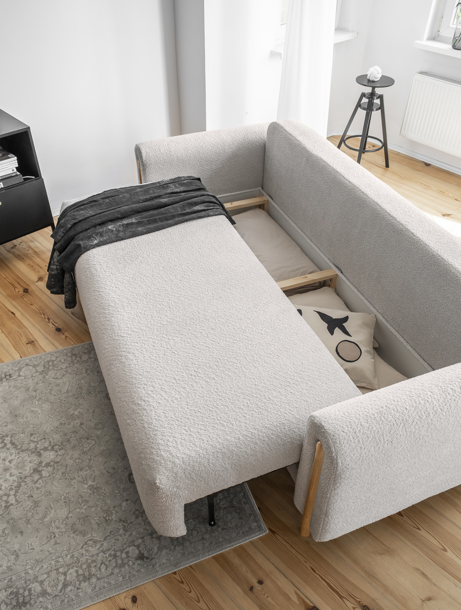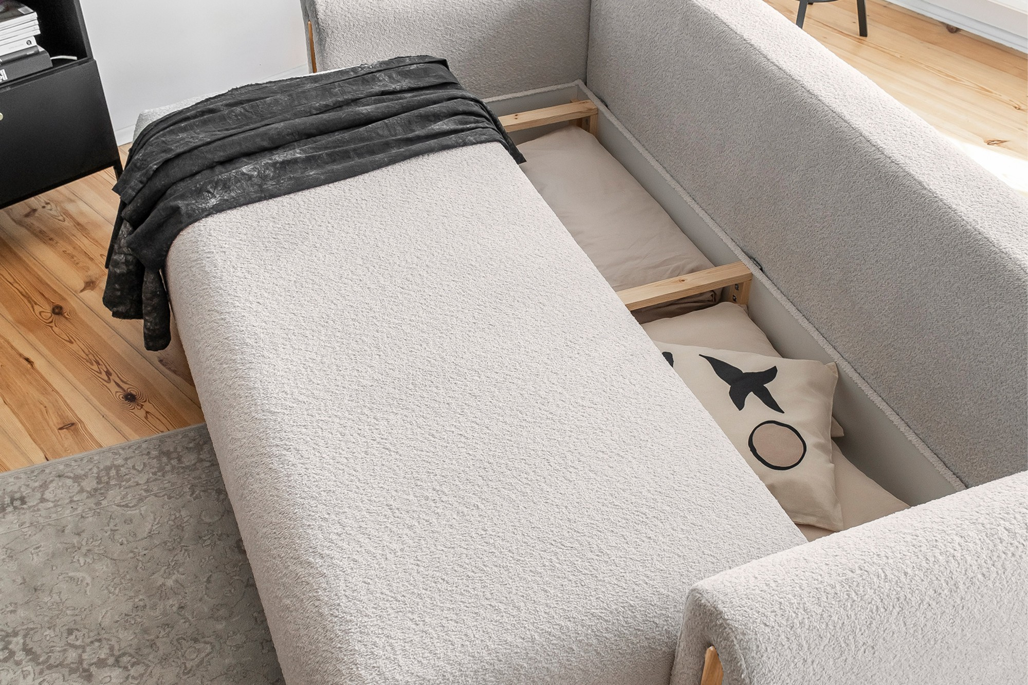 Táto pohovka nie je len o vzhľade, ale aj o funkčnosti. Vďaka možnosti rozkladania sa ľahko premení na pohodlné lôžko s plochou na spanie 200 x 146 cm, čo je ideálne pre hostí alebo pre tých, ktorí si radi doprajú popoludňajší odpočinok. Navyše je vybavená praktickým úložným priestorom, ktorý je ideálny na uschovanie posteľnej bielizne, vankúšov alebo diek.