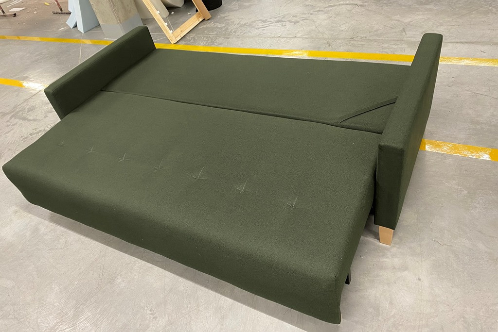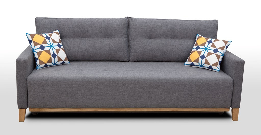 ARIEL je štýlová pohovka do obývačky alebo aj do súkromnej pracovne, ktorá zaujme jednoduchým tvarom a moderným, ale krásnym dizajnom. Pohovka s bočnicami je doplnená dvoma podlhovastými vankúšmi s ozdobným prešívaním na operadle, ktoré zaručujú pohodlie a komfort aj počas dlhého odpočinku. Rozkladacia pohovka je vybavená priestranným kontajnerom na lôžkoviny a má aj funkciu spania, takže nábytok možno rozložiť. Súčasťou pohovky ARIEL sú dva ozdobné vankúše, ktoré podčiarkujú modernistický charakter celej konštrukcie. Voľne stojaci kus nábytku dopĺňa podstavec z prírodného dreva, ktorý dodáva čalúneným prvkom ľahký a svieži vzhľad. Model ARIEL sa vyrába na zákazku, takže ho možno prispôsobiť individuálnym preferenciám, a to aj výberom vhodnej farby zo vzorkovníka farieb dostupného na webovej stránke. Celá plocha pohovky na spanie je vyplnená vlnitou pružinou, ktorá nie je ani príliš mäkká, ani príliš tvrdá. Štýlová pohovka ARIEL vám zaručí nielen pohodlný odpočinok, ale v modernom priestore bude pôsobiť aj esteticky.