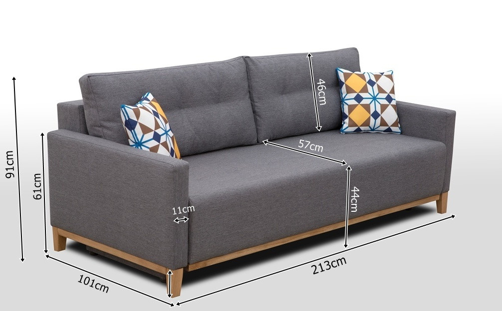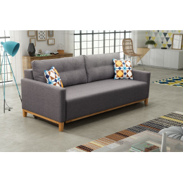 Pohovka Aristo v škandinávskom dizajne zaujme najmä svojím jednoduchým a funkčným spracovaním. Pohovka je rozkladacia a samozrejme je tu aj úložný priestor, ktorý sa dá využiť napr. na posteľnú bielizeň. Jednoduchým rozložením pomocou automatu získate posteľ na príležitostné prenocovanie návštevníkov. Pokyny na rozloženie si môžete pozrieť v krátkom gifu na doplnkových fotografiách. Nájdete tu aj podrobné rozmery pohovky. Pohodlie pri sedení zaisťuje výplň sedadla, ktorú tvoria bonellové pružiny a kvalitná PUR pena, ako aj oporné vankúše, ktoré sú odnímateľné a možno ich prispôsobiť vašim potrebám. Pohovku ponúkame vo viacerých farbách. Úvodná fotografia je ilustračná. Pohovka sa dodáva v poťahovej látke Inari 23. Vzorka látky je zobrazená na dodatočných fotografiách. Moridlo na drevo nie je možné vybrať. V cene pohovky sú zahrnuté 2 malé vzorované vankúše, ktoré sú zobrazené na fotografii. Ostatné zobrazené príslušenstvo a dekorácie nie sú súčasťou balenia.
