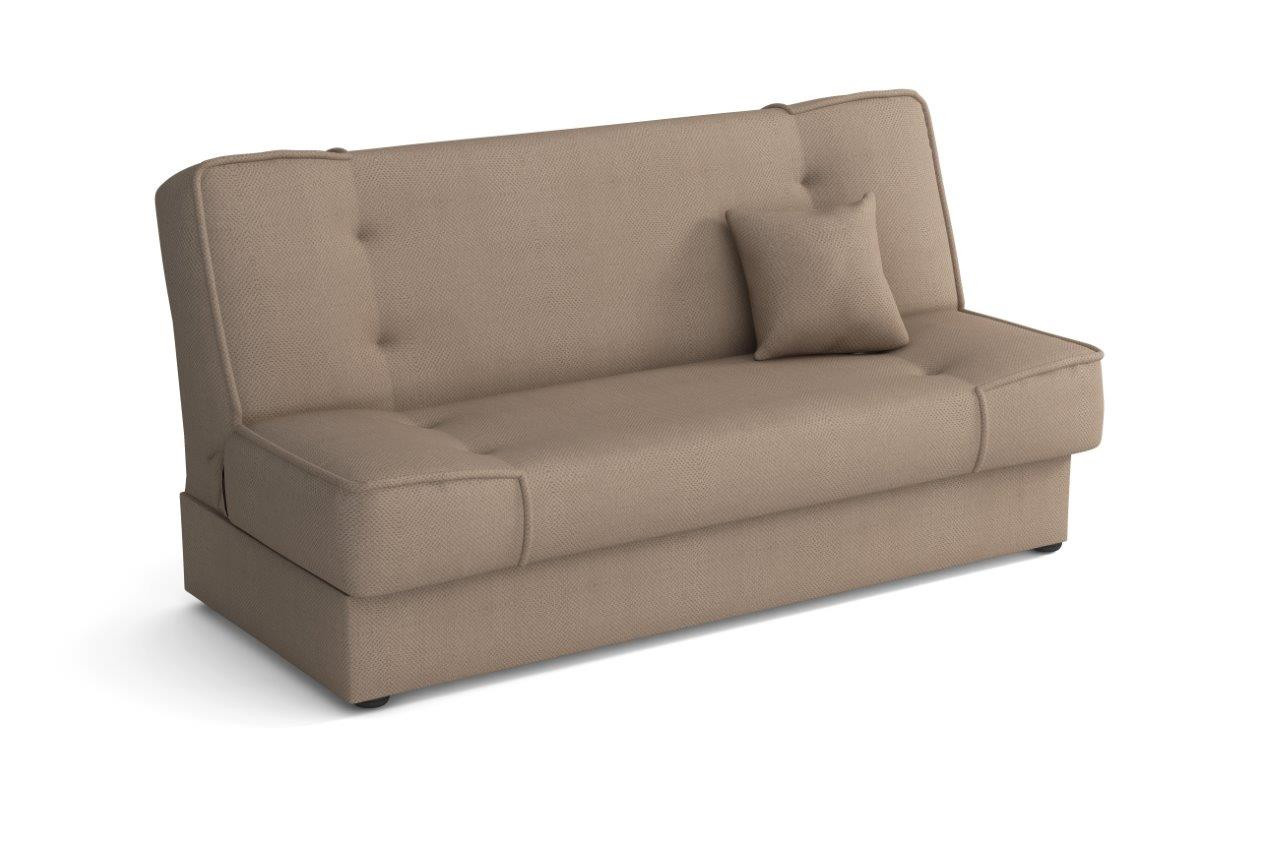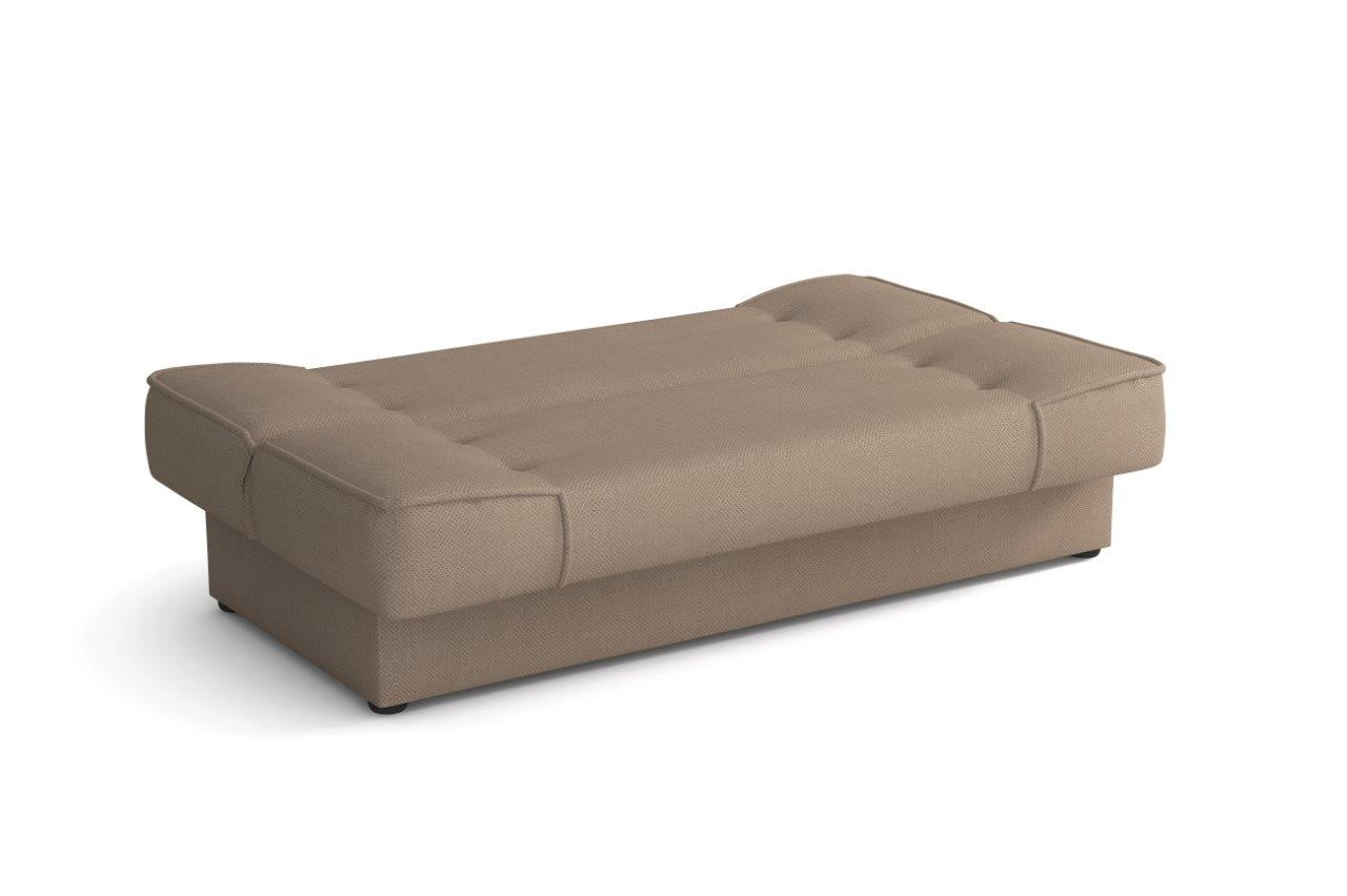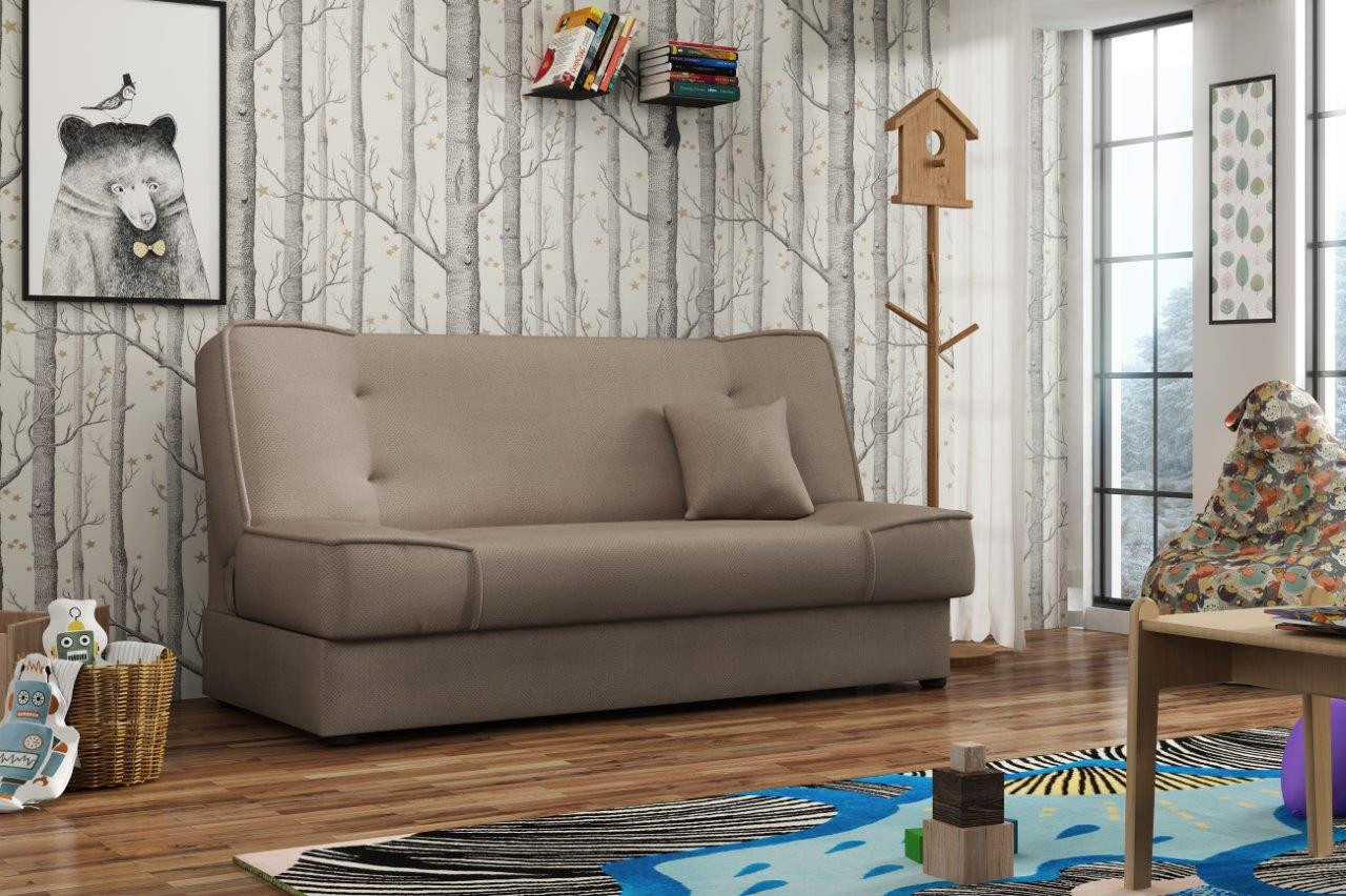 Pohovka Bega je vyrobená v jednoduchom, ale nadčasovom dizajne, ktorý sa hodí do každého interiéru a dokonale ho doplní. Vďaka svojim rozmerom nezaberá veľa miesta a je vhodný do malých miestností. Sedák je vyplnený kombináciou pružín bonell a vysokokvalitnej PUR peny. Pohovka je rozkladacia a samozrejme je tu aj nepostrádateľný úložný priestor. Jednoduchým rozložením pomocou systému click-clack sa vytvorí posteľ na príležitostné spanie. Môžete si vybrať z niekoľkých módnych odtieňov. Cena zahŕňa 1 dekoračný vankúš. Ostatné zobrazené príslušenstvo a dekorácie nie sú súčasťou balenia. Zobrazenie farieb na fotografii sa môže líšiť od skutočnosti.