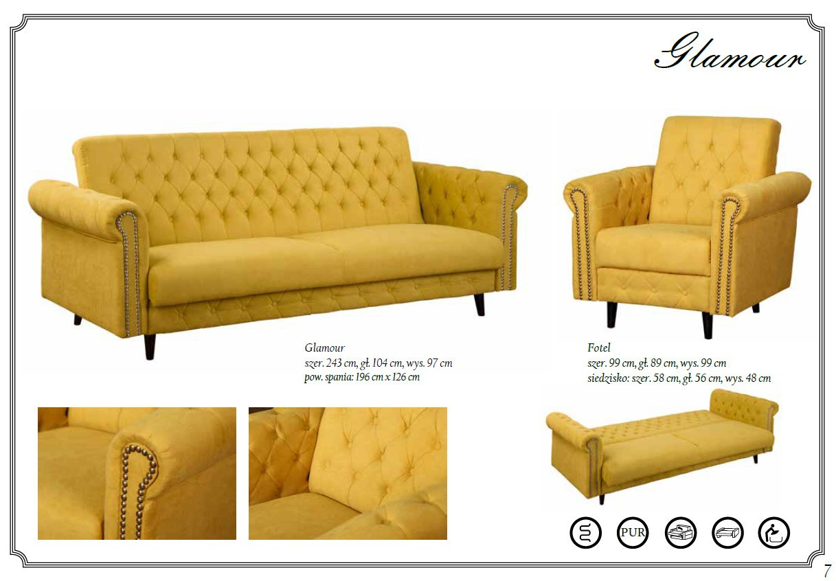 Dvojmiestna pohovka v štýle Glamour. Vyznačuje sa kvalitným spracovaním a elegantným, ozdobným prešívaním. Pohodlná pohovka, ktorá sa dokonale hodí do vašej obývačky a bude ozdobou vášho domova. Rozmery: šírka: 150 cm výška: 80 cm hĺbka: 86 cm Prevedenie a funkcia: pevný drevený rám nožičky z dreva doska + pena elegantné prešívanie ozdobné prešitie na bokoch