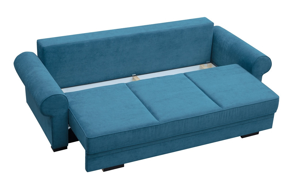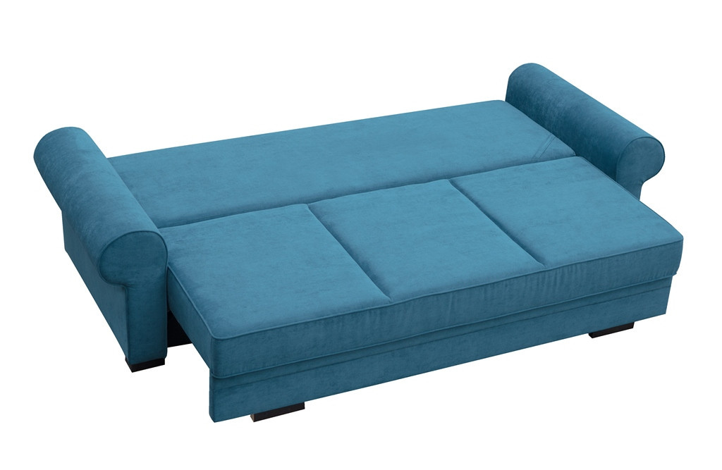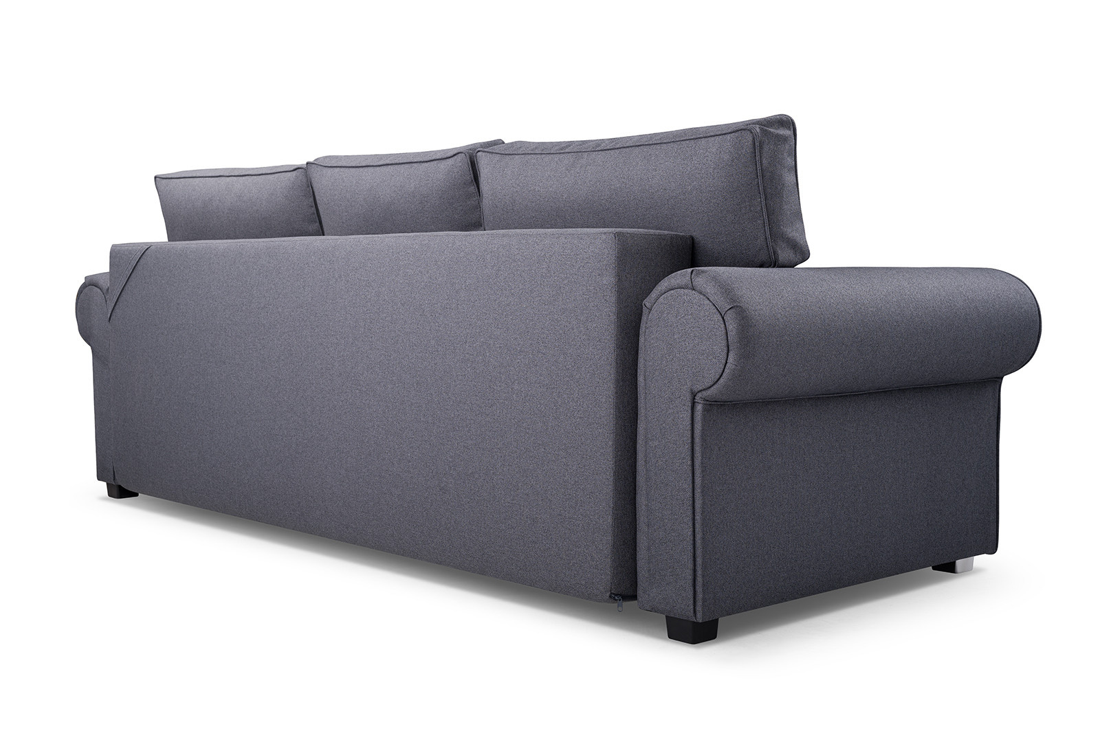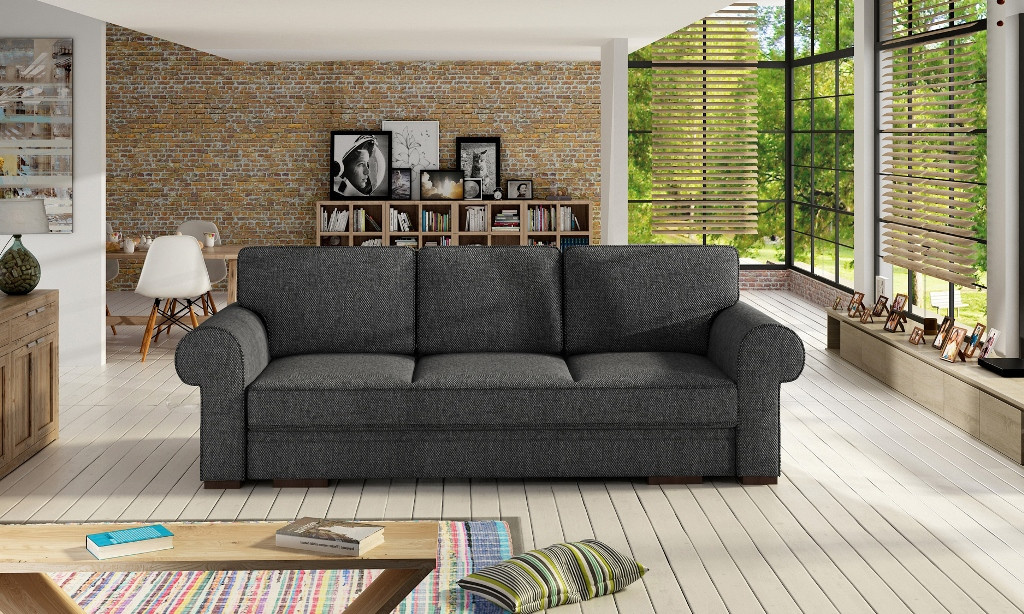 BUKIET je moderne navrhnutá trojmiestna rozkladacia pohovka. Nábytok je čalúnený látkou, ktorej farby si môžete vybrať zo vzorkovníka farieb dostupného na webovej stránke. Štýlová pohovka je kus nábytku vybavený automatickým rozkladom, vďaka ktorému ju možno bez väčších problémov rýchlo premeniť na posteľ. Pohovka BUKIET je voľne stojaci kus nábytku, a preto je čalúnené aj jej operadlo - takéto riešenie umožňuje umiestniť pohovku do centrálnej časti obývacej izby. Nábytok s moderným dizajnom s bočnými stenami je umiestnený na chrómových nožičkách, ktoré mu dodávajú zaujímavý charakter. Model BUKIET je umiestnený na drevenom ráme a sedadlo a operadlo sú zakončené vlnitými pružinami, ktoré pomáhajú zachovať správnu pružnosť, takže napriek častému používaniu nedochádza k nevzhľadným deformáciám. Pohovka BUKIET s klasickým tvarom na prvý pohľad zaujme mierne zaoblenými bokmi a vankúšmi umiestnenými na operadle, ktoré zabezpečujú pohodlie a komfort aj pri dlhom sedení.
