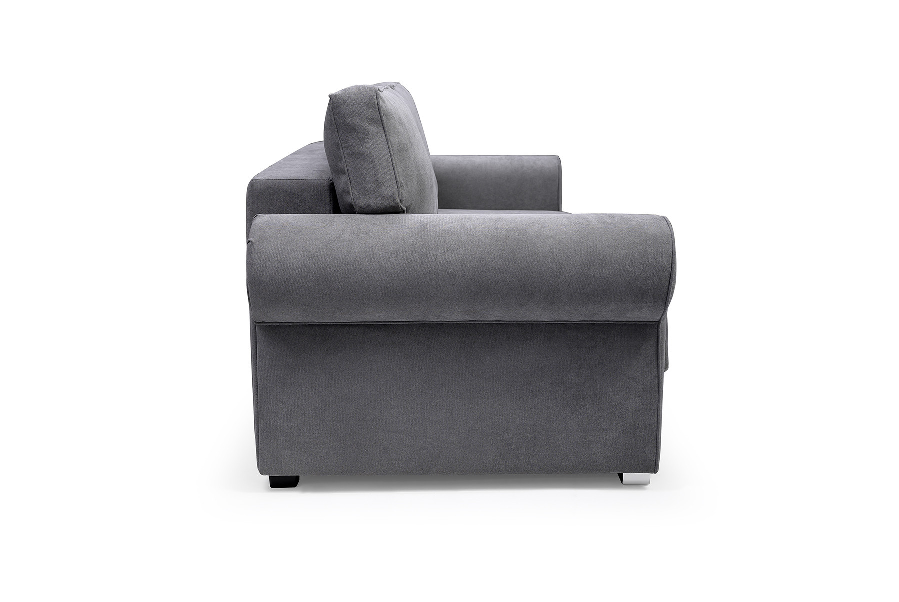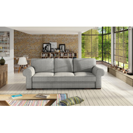 BUKIET je moderne navrhnutá trojmiestna rozkladacia pohovka. Nábytok je čalúnený látkou, ktorej farby si môžete vybrať zo vzorkovníka farieb dostupného na webovej stránke. Štýlová pohovka je kus nábytku vybavený automatickým rozkladom, vďaka ktorému ju možno bez väčších problémov rýchlo premeniť na posteľ. Pohovka BUKIET je voľne stojaci kus nábytku, a preto je čalúnené aj jej operadlo - takéto riešenie umožňuje umiestniť pohovku do centrálnej časti obývacej izby. Nábytok s moderným dizajnom s bočnými stenami je umiestnený na chrómových nožičkách, ktoré mu dodávajú zaujímavý charakter. Model BUKIET je umiestnený na drevenom ráme a sedadlo a operadlo sú zakončené vlnitými pružinami, ktoré pomáhajú zachovať správnu pružnosť, takže napriek častému používaniu nedochádza k nevzhľadným deformáciám. Pohovka BUKIET s klasickým tvarom na prvý pohľad zaujme mierne zaoblenými bokmi a vankúšmi umiestnenými na operadle, ktoré zabezpečujú pohodlie a komfort aj pri dlhom sedení.