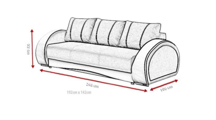 Pohovka CHER je vyhotovená v modernistickom dizajne, takže okolo nej nikto neprejde ľahostajne. Pohovka so zaoblenými bokmi môže byť čalúnená látkou alebo ekokožou, ktoré sú k dispozícii v širokej škále farieb vo vzorkovníku. Trojmiestna pohovka je vybavená nádobou na lôžkoviny a funkciou spania, takže sa dá rozložiť. V základnej verzii pohovky sú vložky vyrobené z bielej ekokože. CHER je pohovka postavená na drevenom ráme a doplnená chrómovými nohami. Pohovku môžu rozložiť aj starší alebo mladší ľudia, pretože je vybavená automatickým asistenčným systémom na rozkladanie DL. Sedadlo pohovky je vyplnené bonellovými a vlnitými pružinami, takže si môžete byť istí komfortom a pohodlím aj pri dlhom používaní.