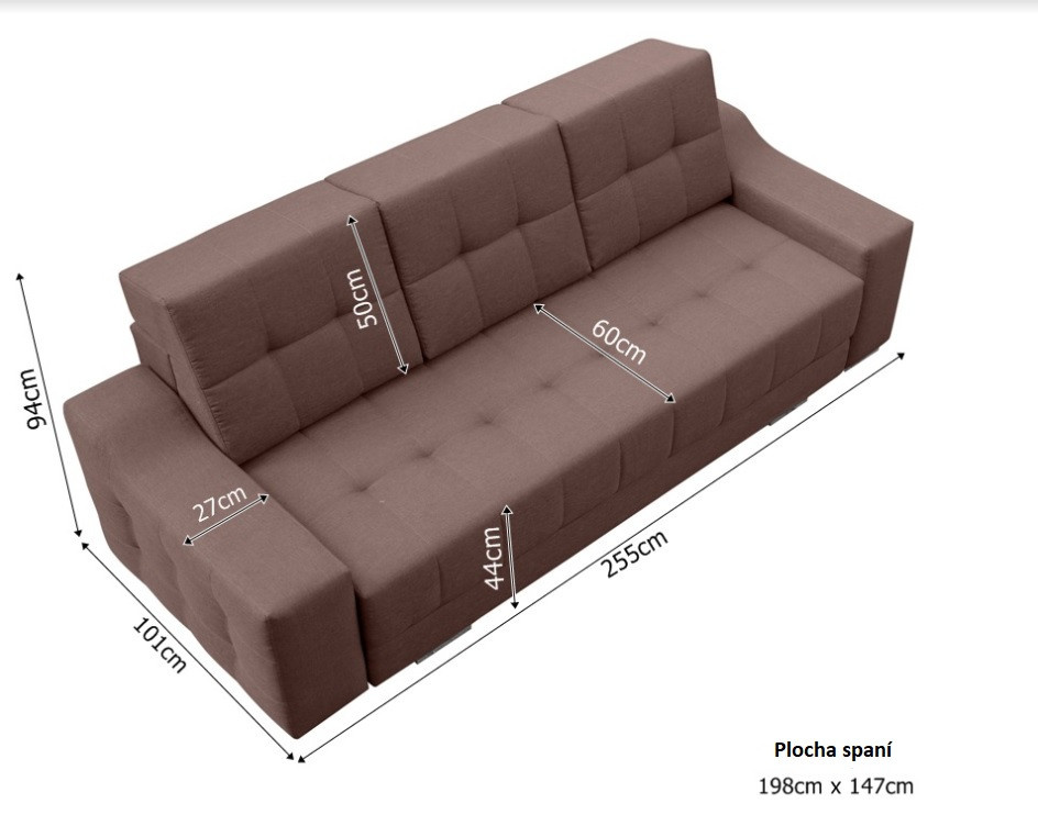 Štýlová pohovka CYNITA je trojmiestna pohovka vhodná do obývačky - môžete na nej s rodinou relaxovať pri šálke kávy alebo čaju, pozerať televíziu alebo čítať knihu. Rozkladacia pohovka s funkciou spania na drevenom ráme je vybavená moderne vyzerajúcimi chrómovými nohami. Konštrukciu nábytku tvorí drevený rám, ktorý je zárukou odolnosti a stability, zatiaľ čo výplň sedadla a operadla tvorí vlnitá pružina - žiadne nevzhľadné deformácie. CYNITA upúta pozornosť dekoratívnym prešívaním a šitím, ktoré nikto neminie ľahostajne. Okrem úložného priestoru na lôžkoviny je pohovka s bočnicami vybavená pohyblivými vankúšmi, ktoré nielenže dopĺňajú estetiku pohovky, ale zabezpečujú aj komfort a pohodlie pri jej používaní. Voľne stojaci kus nábytku môže byť celý čalúnený látkou alebo ekokožou. Rozkladacia pohovka nájde svoje ideálne miesto v obývacej izbe aj v súkromnej pracovni.
