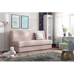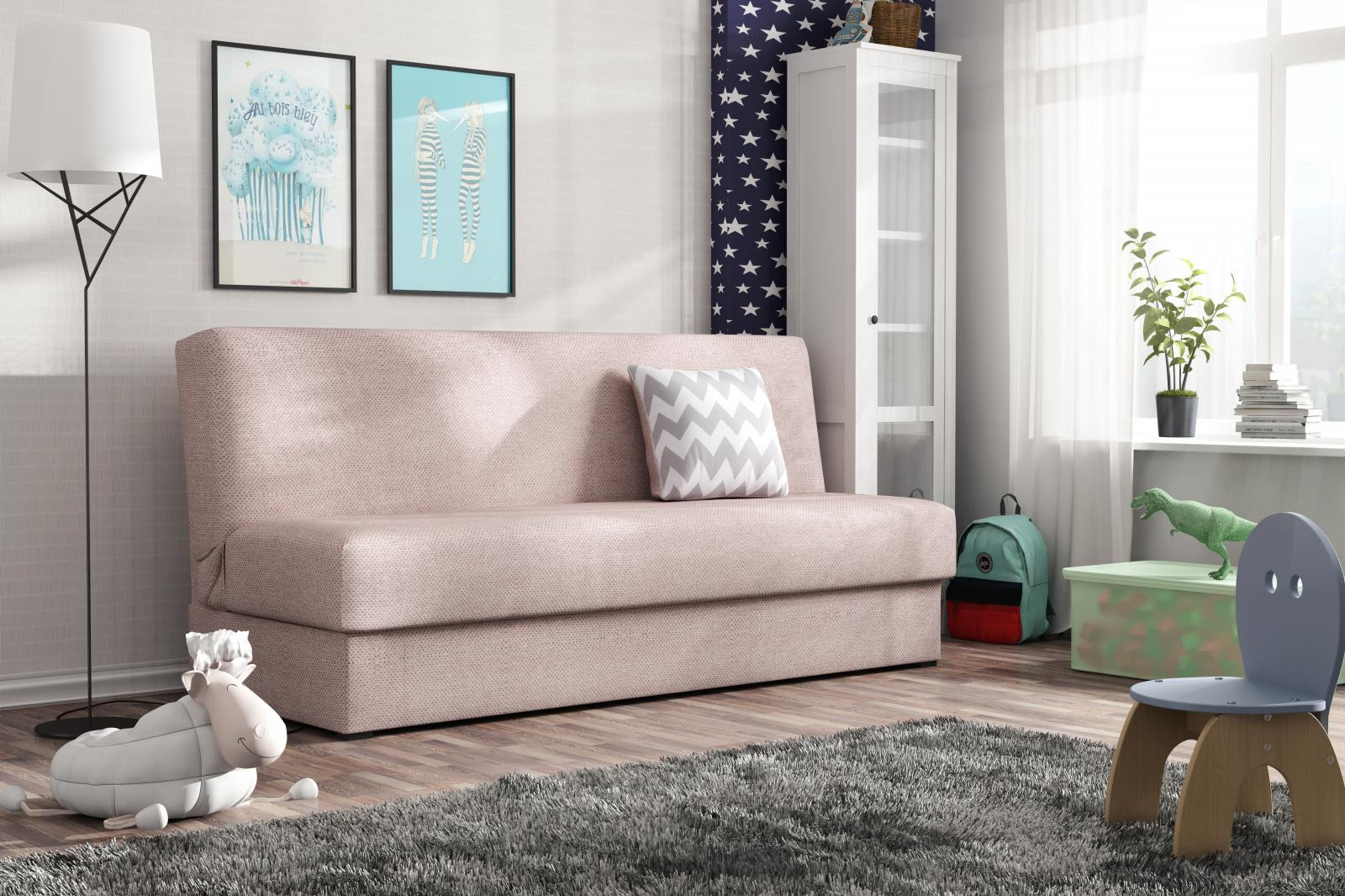 Pohovka Deli Mini je vyrobená v jednoduchom a nadčasovom dizajne, ktorý sa hodí do každého priestoru. Môže sa použiť v obývacej alebo študentskej izbe, prípadne v izbe pre hostí. Vďaka svojim rozmerom je vhodný aj do malých miestností. Pohovka je rozkladacia a má praktický úložný priestor. Sedák je vyplnený kombináciou pružín bonell a vysokokvalitnej PUR peny. Jednoduchým rozložením pomocou systému click-clack sa vytvorí posteľ na príležitostné spanie. Pohovku ponúkame vo viacerých farbách. Vzorka látky, v ktorej bude pohovka dodaná, je zobrazená na dodatočných fotografiách. V cene je zahrnutý malý dekoratívny vankúšik. Ostatné zobrazené príslušenstvo a dekorácie nie sú súčasťou balenia. Farby výrobku zobrazené na fotografii sa môžu mierne líšiť od skutočnosti.