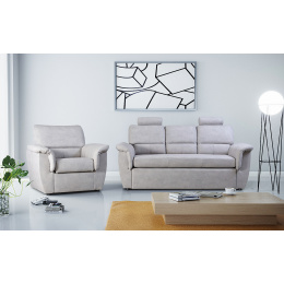 DIANA je moderne navrhnutá trojmiestna pohovka s funkciou spania, vďaka ktorej ju možno cez deň používať ako kus nábytku na relaxáciu s rodinou a v noci ju možno premeniť na posteľ na regeneračný odpočinok. Nábytok má aj priestranný úložný priestor na posteľnú bielizeň, do ktorého môžete uložiť vankúše, prestieradlá a prikrývky - bez toho, aby ste na ne museli vyčleňovať miesto v skrinkách alebo zásuvkách. Pohovka je umiestnená na drevenom ráme a profilované operadlo zaručuje pohodlný odpočinok - ani po mnohých hodinách používania pohovky nebudete cítiť žiadne nepohodlie. Pohovka DIANA je vybavená nastaviteľnými opierkami hlavy, vďaka ktorým si môžete ľubovoľne nastaviť ich výšku podľa svojich individuálnych preferencií. Moderná pohovka je voľne stojaci kus nábytku, preto je jej operadlo čalúnené látkou, ktorej farbu si môžete vybrať zo vzorkovníka. Trojmiestna pohovka DIANA sa dokonale hodí do modernistickej alebo minimalistickej obývacej izby alebo aj do obývačky. Stolička nie je súčasťou balenia.