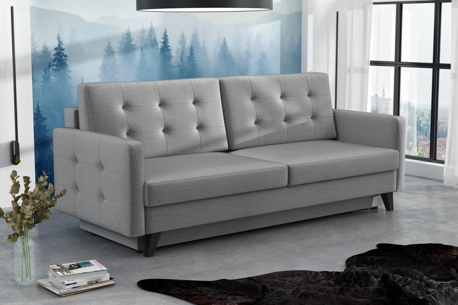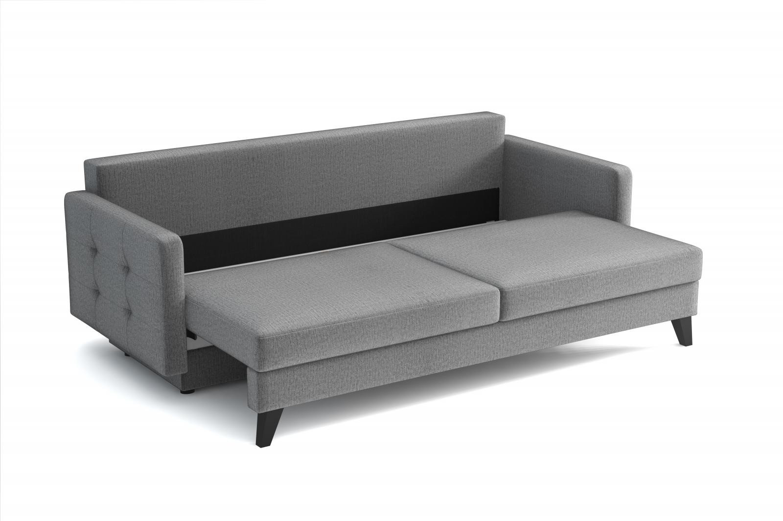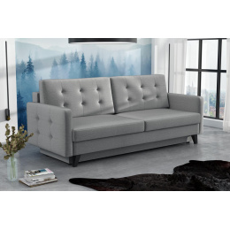 Pohovka Fjord je krásny elegantný kúsok s nádychom RETRO dizajnu a dokonale zapadne do každého interiéru. Retro dizajn podčiarkujú skosené drevené nohy a látkové gombíky na podrúčke. Pohovka je rozkladacia a samozrejme je tu aj nepostrádateľný úložný priestor. Jednoduchým rozložením pomocou automatického stroja vznikne dostatočne priestranná posteľ na občasné prespanie návštevníkov. Sedák je vyplnený vlnitými pružinami v kombinácii s bonellovými pružinami a kvalitnou PUR penou. Pohovka je celočalúnená, takže ju môžete umiestniť do priestoru. Výborne sa hodí do obývačky, pracovne alebo hosťovskej izby. Pohovku ponúkame v niekoľkých módnych farbách. Fotografie pohovky v rozkladacej polohe slúžia len na ilustračné účely.správny farebný odtieň je na úvodnej fotografii.