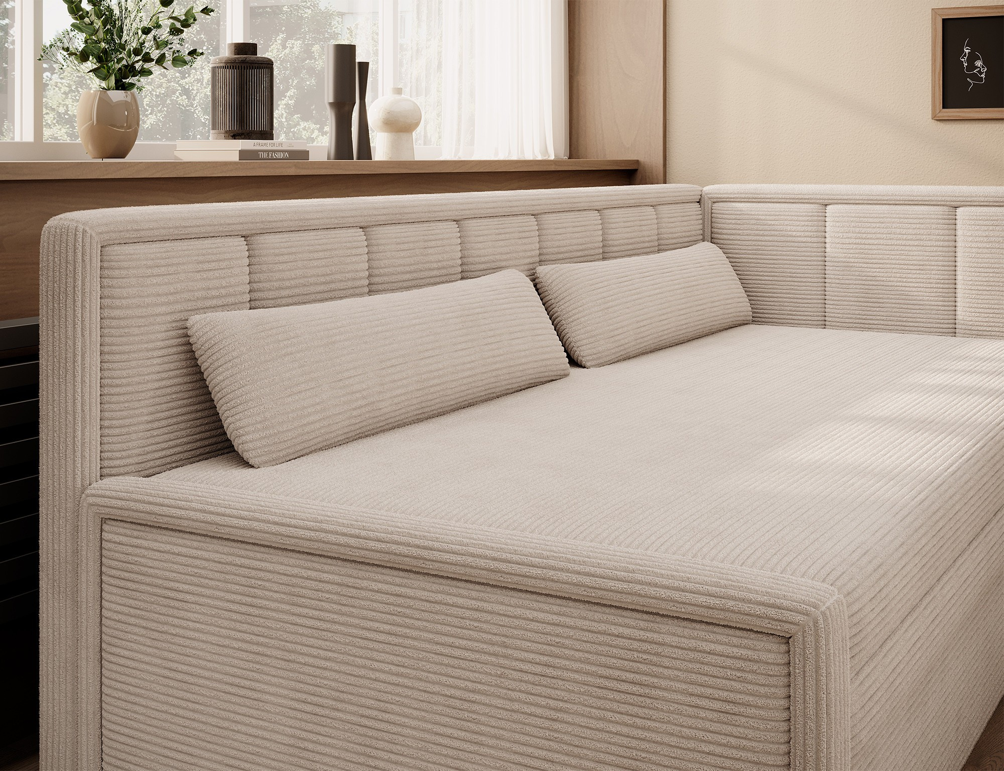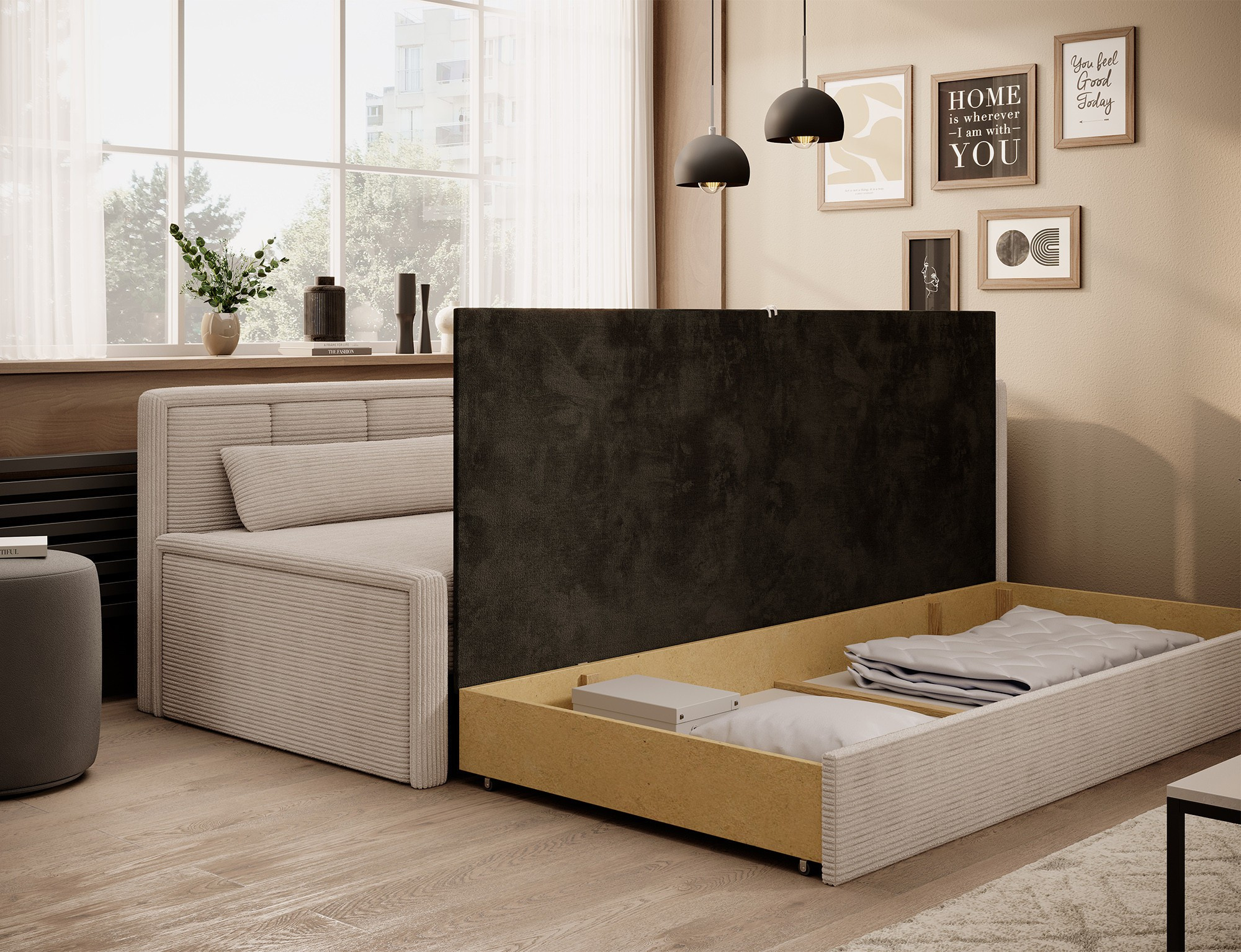 Jednou z hlavných predností tejto pohovky je jej multifunkčnosť. Vďaka možnosti rozkladania sa ľahko premení na pohodlné lôžko s plochou na spanie 150 x 200 cm, čo je ideálne pre hostí alebo pre tých, ktorí si radi doprajú popoludňajší odpočinok. Navyše je vybavená praktickým úložným priestorom, ktorý vám umožní ľahko uschovať deky, vankúše alebo iné predmety, ktoré chcete mať po ruke, ale zároveň ich mať úhľadne upratané.