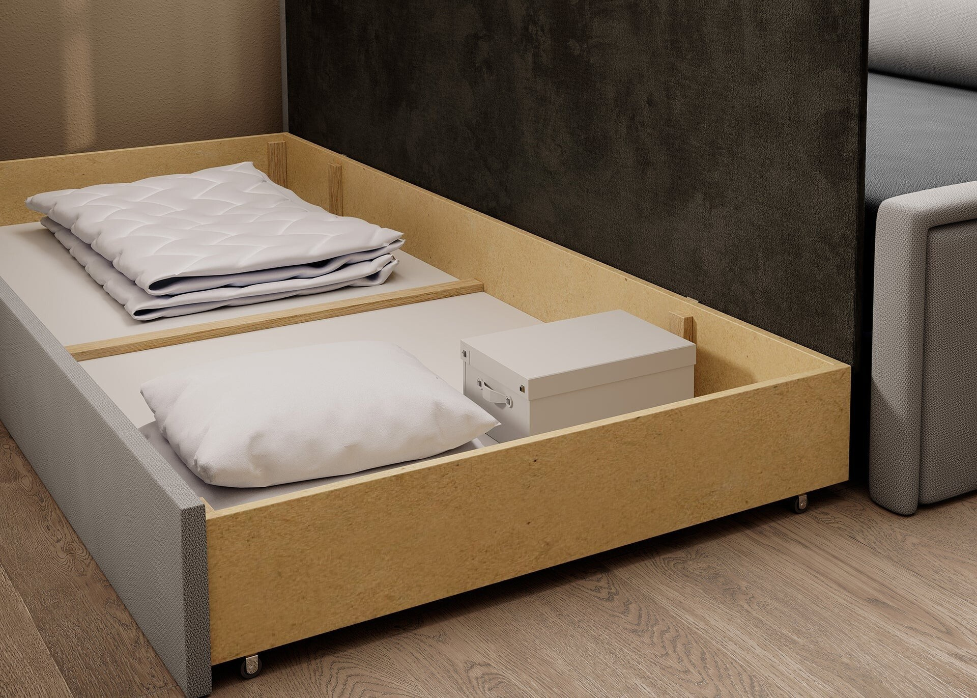 Jednou z hlavných predností tejto pohovky je jej multifunkčnosť. Vďaka možnosti rozkladania sa ľahko premení na pohodlné lôžko s plochou na spanie 150 x 200 cm, čo je ideálne pre hostí alebo pre tých, ktorí si radi doprajú popoludňajší odpočinok. Navyše je vybavená praktickým úložným priestorom, ktorý vám umožní ľahko uschovať deky, vankúše alebo iné predmety, ktoré chcete mať po ruke, ale zároveň ich mať úhľadne upratané.
