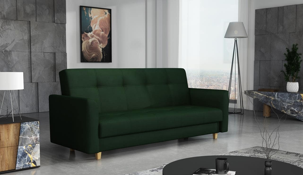 Príjemným relaxom po dlhom a vyčerpávajúcom dni v práci je zvyčajne pohodlná pohovka so šálkou dobrej kávy, čaju alebo pohárom vína. Pohovka Gala je na tento účel ideálna. Pohovka má elegantný dizajn, ktorý dokonale doplní každý interiér. Tento elegantný kúsok sa bude používať v obývacej izbe. Poslúži všade tam, kde je prioritou pohodlie. Môžete ho umiestniť do kancelárie, pracovne alebo izby pre hostí. Pohovka Gala je nielen veľmi pohodlná, ale aj praktická. Komfort zabezpečujú pružiny bonell v kombinácii s kvalitnou PUR penou. Praktickou stránkou pohovky je možnosť jej rozloženia na príležitostné prenocovanie a potrebný úložný priestor, ktorý môžete využiť napr.na posteľnú bielizeň. Pohovka je čalúnená kvalitnou látkou. Pohovka je celočalúnená, takže ju môžete umiestniť do priestoru a ponúkame ju v niekoľkých módnych odtieňoch. Zobrazenie farieb na fotografii sa môže líšiť od skutočnosti. Vyobrazené príslušenstvo a dekorácie nie sú zahrnuté v cene.