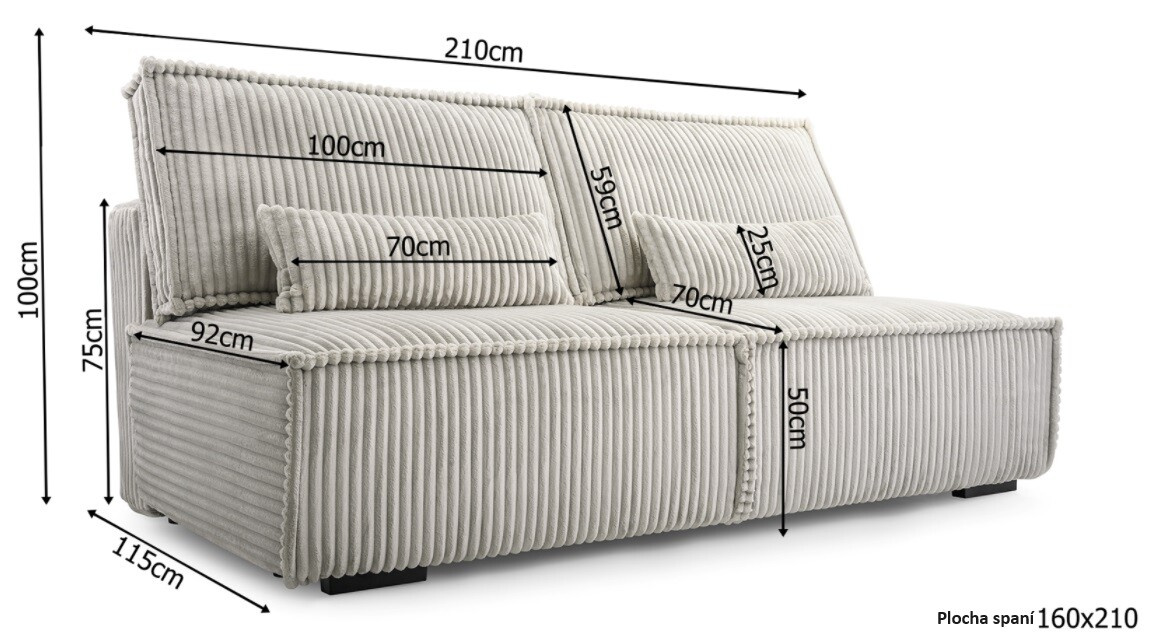 | Priestor na spanie | 210 x 160 cm |