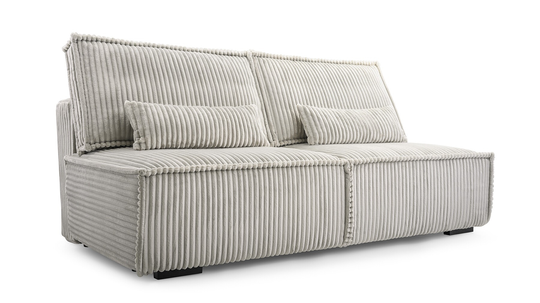 Vďaka kompaktnému tvaru bez bočných panelov je táto pohovka ideálna do malých miestností a zároveň poskytuje priestor pre tri osoby.