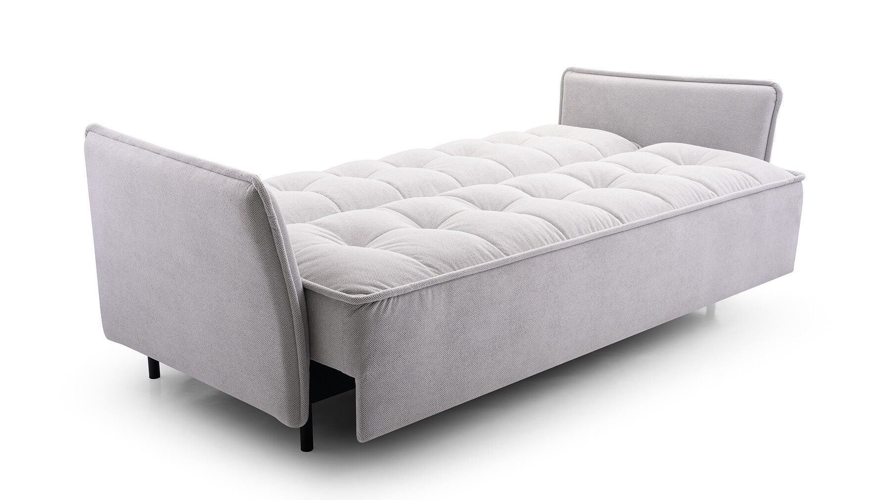 Pohovka JARIS je moderný kúsok, ktorý sa bude skvele vynímať v obývacej izbe zariadenej v modernom štýle. Pohovka je čalúnená látkou, ktorá je k dispozícii v širokej škále farieb na výber. Zadná časť pohovky je tiež čalúnená - pohovka je samostatne stojaci kus nábytku. Model JARIS s bočnými panelmi má mimoriadne estetický a moderný vzhľad, takže ho nikto neminie ľahostajne. Pohovka je vybavená funkciou spania a priestranným úložným priestorom na posteľnú bielizeň, ktorý nám pomôže udržať poriadok v miestnosti. Čierne kovové nohy podčiarkujú výnimočne originálny charakter nábytku.pohovka je vyplnená vlnitou pružinou a penou T-35 - materiálmi, ktoré zaručujú správnu pevnosť sedáku; nedeformuje sa a zároveň poskytuje pohodlné sedenie. Takto usporiadaná pohovka bude v industriálnom priestore vyzerať dokonale.