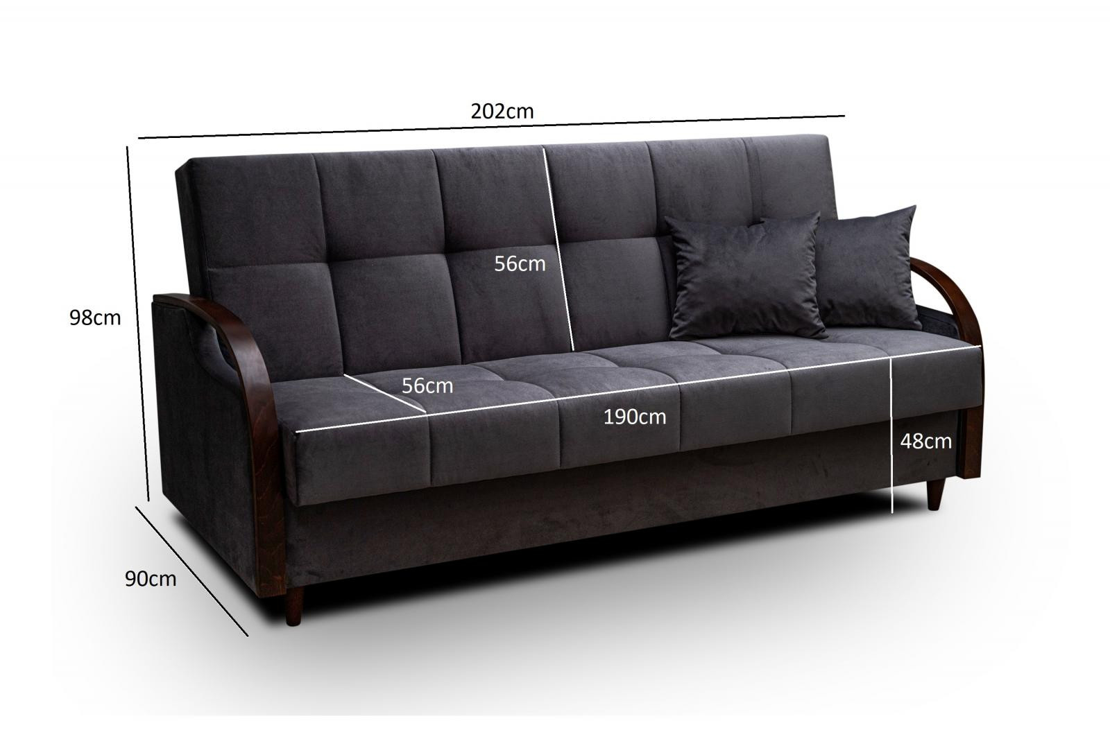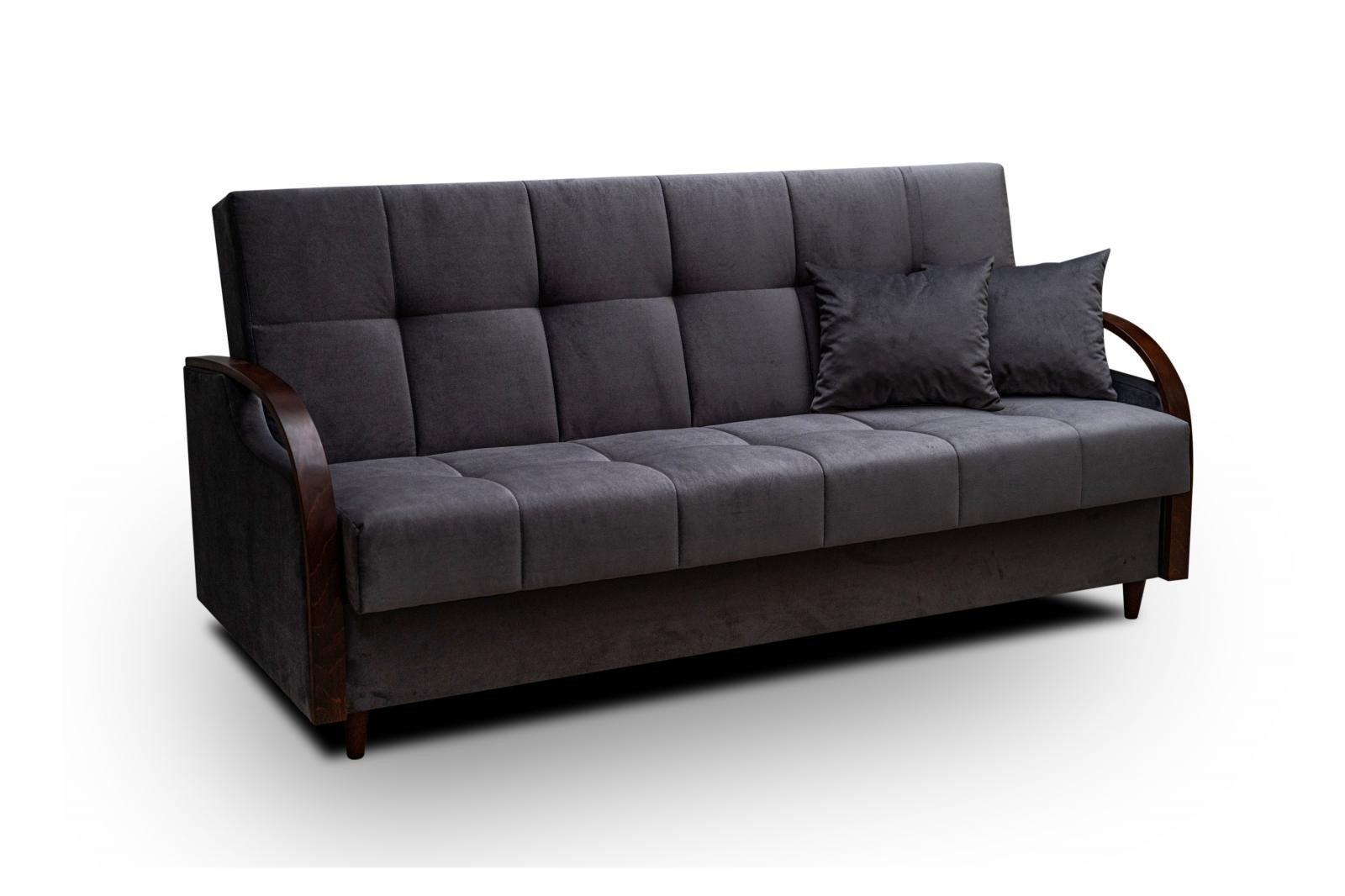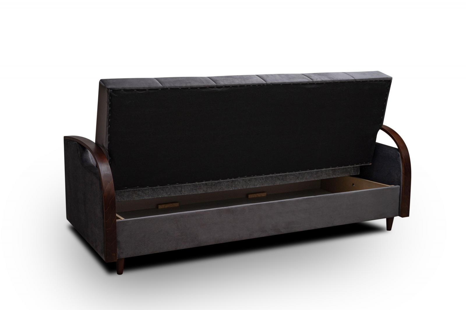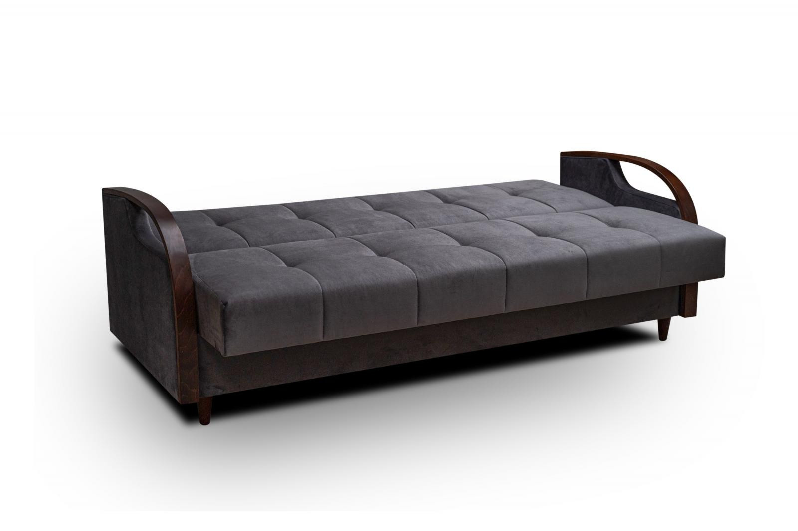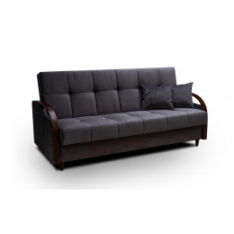 Efektným prvkom tejto pohovky sú bočné opierky zakončené drevenou lištou. Pohovka je nielen veľmi pohodlná, ale aj praktická. Pohodlie pri sedení zabezpečujú pružiny typu bonell v kombinácii s kvalitnou PUR penou. Praktickou stránkou pohovky je možnosť rozloženia na príležitostné prespanie návštevy a nevyhnutný úložný priestor, ktorý využijete napr.na posteľnú bielizeň. Pohovku ponúkame v niekoľkých trendy odtieňoch. Pohovka bude dodaná v poťahovej látke Kronos 22, vzorka látky je vyobrazená na druhej fotografii.