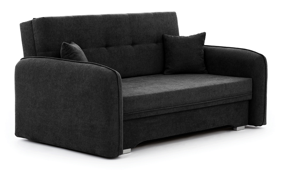 Vynikajúci dizajn, premyslená kompozícia a minimalistický vzhľad – to je to, o čom je výsuvná posteľ Laine. Tento kus nábytku je mimoriadne pohodlný vďaka výplni vo forme Bonell pružín a T25 peny. Navyše je naša výsuvná posteľ vybavená úložným priestorom na posteľnú bielizeň, takže je skvelým miestom na uloženie ďalších vankúšov alebo prikrývok. Nohy Laine sú vyrobené z plastu a sú vysoké iba 3 centimetre. Rozmery rozkladacej postele sú: 155x105x75 cm a prinesie elegantný štýl a funkčnosť do každej obývačky, spálne alebo domácej kancelárie. Laine možno veľmi rýchlo premeniť na posteľ s rozmermi 196x125 cm. Je to určite ideálna voľba pre večerné premietanie filmov. Zaujímavé dekorácie vo forme prešívania na zadnej strane prispievajú k vizuálnej stránke rozkladacej postele Laine. Okrem toho tento kus nábytku obsahuje dva dekoratívne vankúše v rovnakej farbe ako samotná posteľ. Laine je ideálnou voľbou pre fanúšikov minimalistických a prírodných riešení v interiérovom dizajne.
