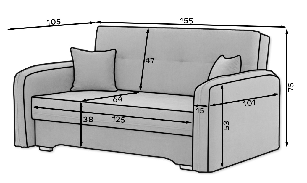 Vynikajúci dizajn, premyslená kompozícia a minimalistický vzhľad – to je to, o čom je výsuvná posteľ Laine. Tento kus nábytku je mimoriadne pohodlný vďaka výplni vo forme Bonell pružín a T25 peny. Navyše je naša výsuvná posteľ vybavená úložným priestorom na posteľnú bielizeň, takže je skvelým miestom na uloženie ďalších vankúšov alebo prikrývok. Nohy Laine sú vyrobené z plastu a sú vysoké iba 3 centimetre. Rozmery rozkladacej postele sú: 155x105x75 cm a prinesie elegantný štýl a funkčnosť do každej obývačky, spálne alebo domácej kancelárie. Laine možno veľmi rýchlo premeniť na posteľ s rozmermi 196x125 cm. Je to určite ideálna voľba pre večerné premietanie filmov. Zaujímavé dekorácie vo forme prešívania na zadnej strane prispievajú k vizuálnej stránke rozkladacej postele Laine. Okrem toho tento kus nábytku obsahuje dva dekoratívne vankúše v rovnakej farbe ako samotná posteľ. Laine je ideálnou voľbou pre fanúšikov minimalistických a prírodných riešení v interiérovom dizajne.