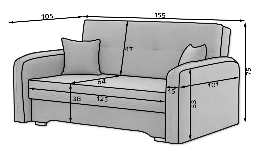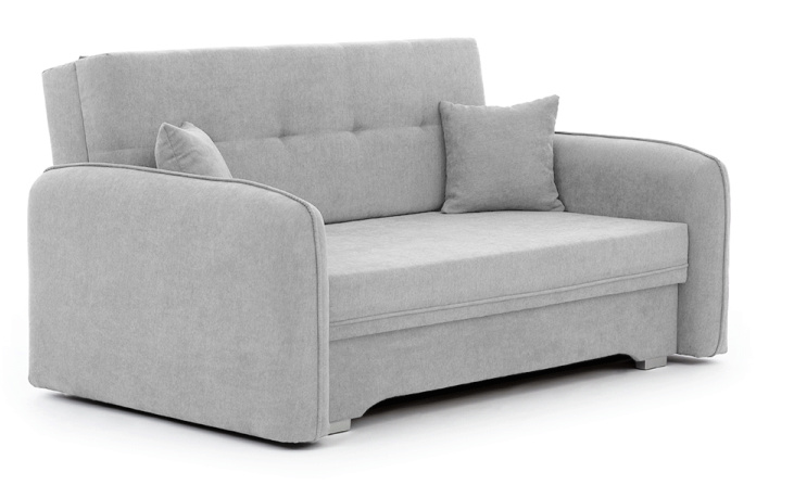Vynikajúci dizajn, premyslená kompozícia a minimalistický vzhľad – to je to, o čom je výsuvná posteľ Laine. Tento kus nábytku je mimoriadne pohodlný vďaka výplni vo forme Bonell pružín a T25 peny. Navyše je naša výsuvná posteľ vybavená úložným priestorom na posteľnú bielizeň, takže je skvelým miestom na uloženie ďalších vankúšov alebo prikrývok. Nohy Laine sú vyrobené z plastu a sú vysoké iba 3 centimetre. Rozmery rozkladacej postele sú: 155x105x75 cm a prinesie elegantný štýl a funkčnosť do každej obývačky, spálne alebo domácej kancelárie. Laine možno veľmi rýchlo premeniť na posteľ s rozmermi 196x125 cm. Je to určite ideálna voľba pre večerné premietanie filmov. Zaujímavé dekorácie vo forme prešívania na zadnej strane prispievajú k vizuálnej stránke rozkladacej postele Laine. Okrem toho tento kus nábytku obsahuje dva dekoratívne vankúše v rovnakej farbe ako samotná posteľ. Laine je ideálnou voľbou pre fanúšikov minimalistických a prírodných riešení v interiérovom dizajne.