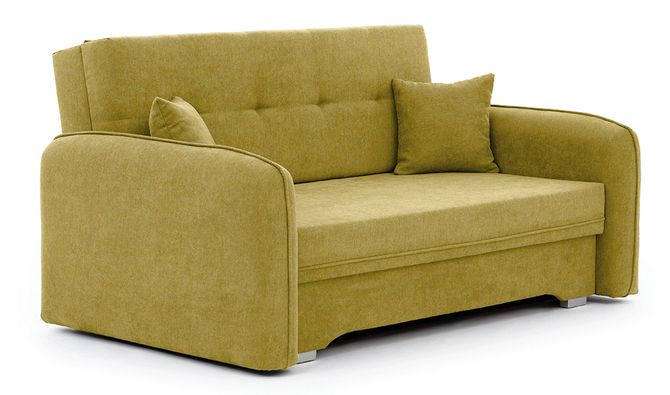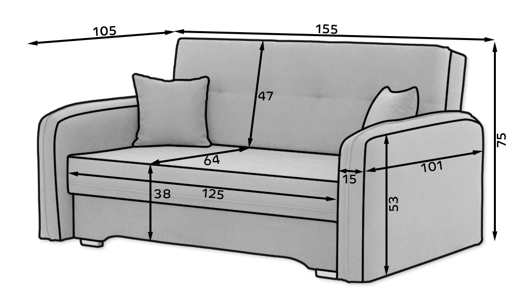 Vynikajúci dizajn, premyslená kompozícia a minimalistický vzhľad – to je to, o čom je výsuvná posteľ Laine. Tento kus nábytku je mimoriadne pohodlný vďaka výplni vo forme Bonell pružín a T25 peny. Navyše je naša výsuvná posteľ vybavená úložným priestorom na posteľnú bielizeň, takže je skvelým miestom na uloženie ďalších vankúšov alebo prikrývok. Nohy Laine sú vyrobené z plastu a sú vysoké iba 3 centimetre. Rozmery rozkladacej postele sú: 155x105x75 cm a prinesie elegantný štýl a funkčnosť do každej obývačky, spálne alebo domácej kancelárie. Laine možno veľmi rýchlo premeniť na posteľ s rozmermi 196x125 cm. Je to určite ideálna voľba pre večerné premietanie filmov. Zaujímavé dekorácie vo forme prešívania na zadnej strane prispievajú k vizuálnej stránke rozkladacej postele Laine. Okrem toho tento kus nábytku obsahuje dva dekoratívne vankúše v rovnakej farbe ako samotná posteľ. Laine je ideálnou voľbou pre fanúšikov minimalistických a prírodných riešení v interiérovom dizajne.