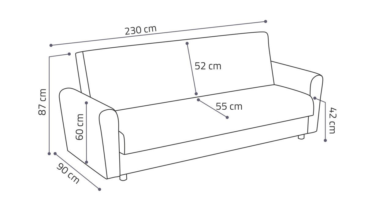 Pohovka Lana je príjemnou kombináciou elegancie, funkčnosti a atraktívnej ceny. Dokonale podčiarkuje moderný dizajn obývacej izby, ale je vhodný napríklad aj na. pre študentskú izbu, pracovňu alebo izbu pre hostí. Pohovka je rozkladacia pohovka. Jednoduchým rozložením získate posteľ na občasné prespanie návštevníkov. Samozrejmosťou je aj praktický úložný priestor , ktorý môžete využiť na posteľnú bielizeň. Pohovku ponúkame vo viacerých farbách. Zobrazené príslušenstvo a dekorácie nie sú súčasťou balenia.