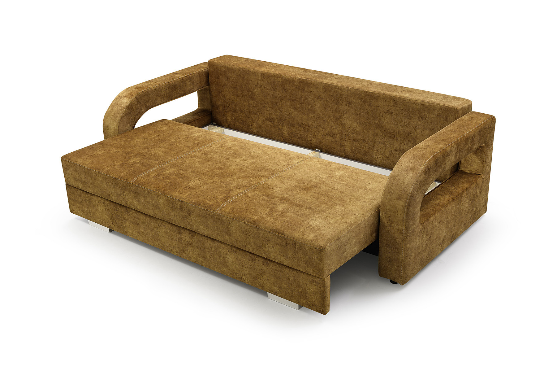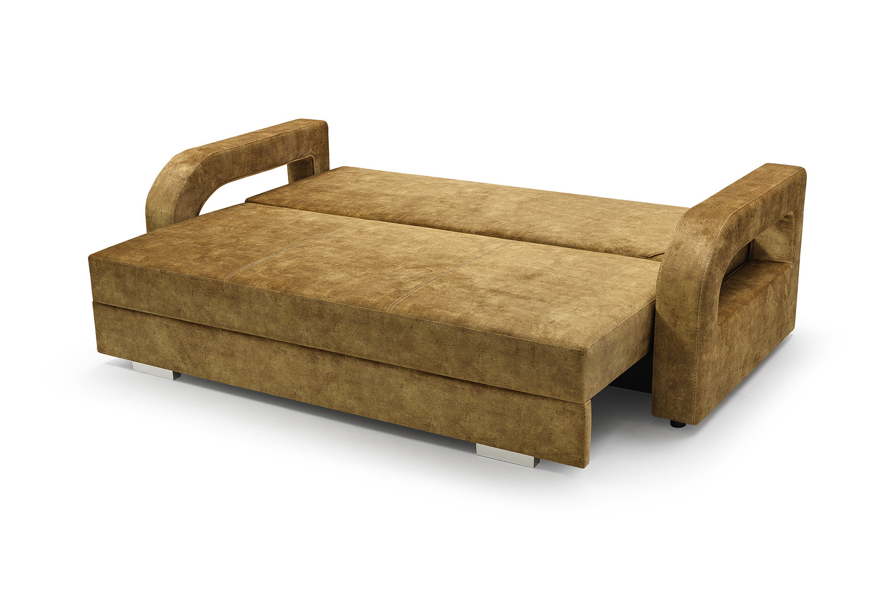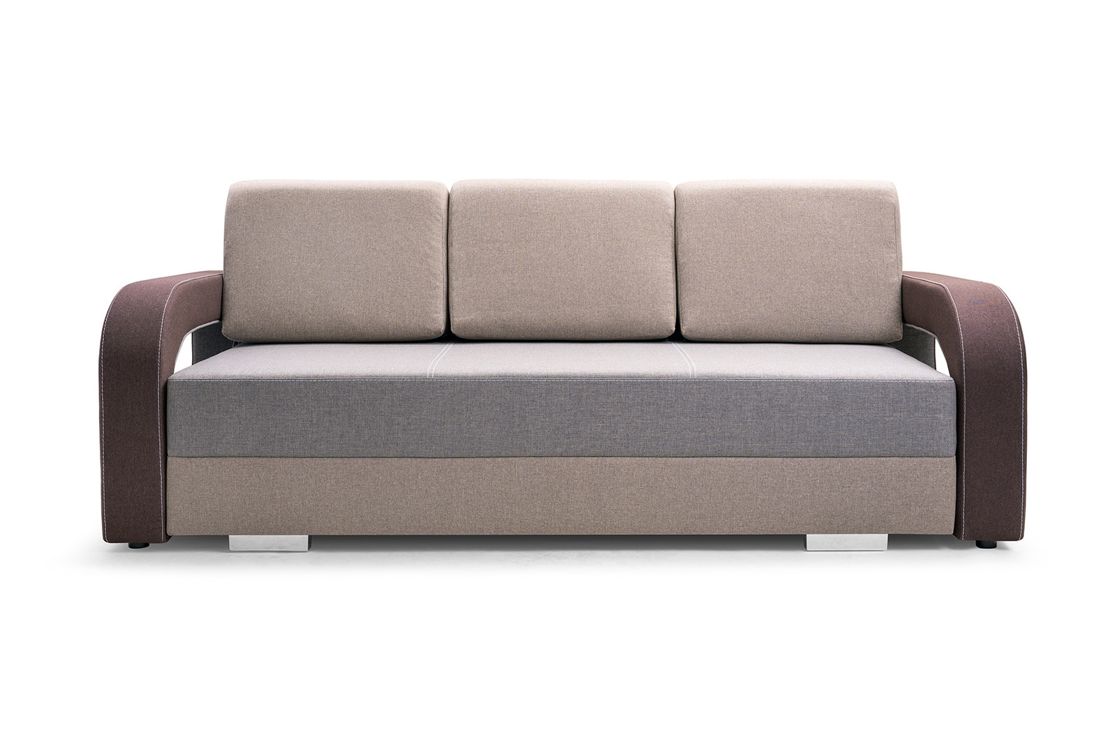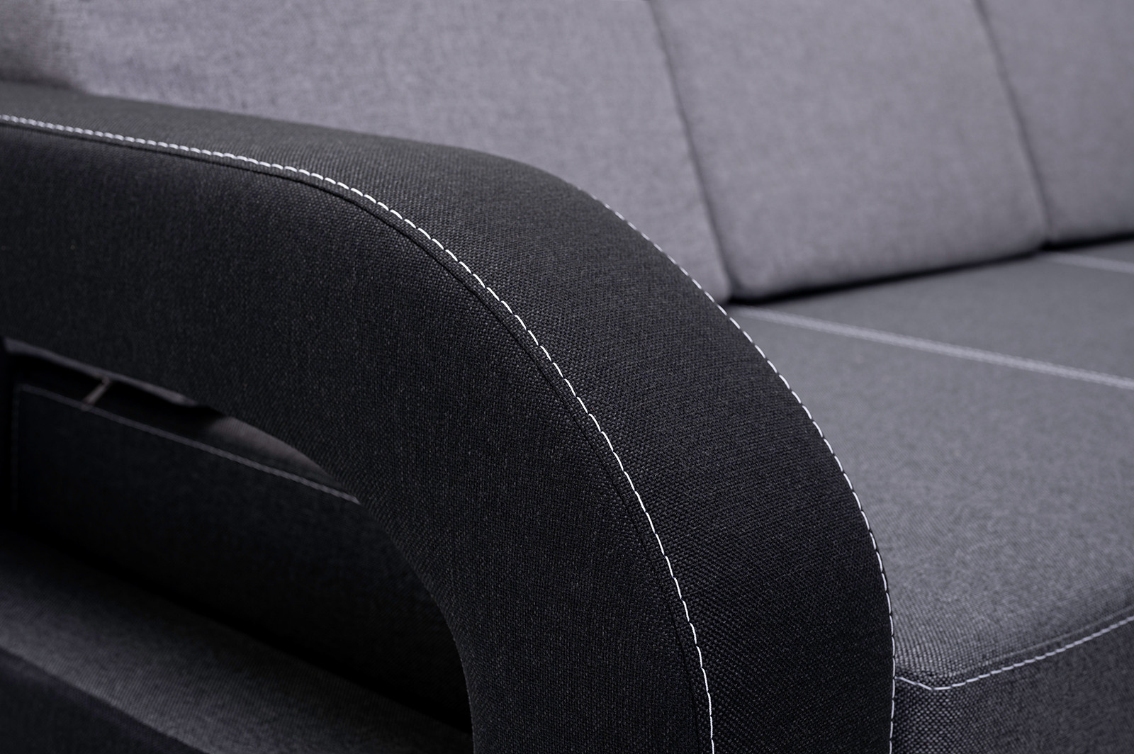 Trojmiestna pohovka LAURA je jednoduchý, ale moderne vyzerajúci kúsok, ktorý zaujme modernistickými výrezmi pod podrúčkami. Štýlová rozkladacia pohovka LAURA K je vybavená nielen úložným priestorom na lôžkoviny, ale aj automatickou rozkladacou pomôckou, vďaka ktorej je zloženie alebo rozloženie postele rýchle a jednoduché. Nábytok s dreveným rámom je umiestnený na pochrómovaných nohách, ktoré nielenže poskytujú dostatočnú stabilitu, ale zároveň dodávajú nábytku atraktívny dizajn. Pohovka môže byť čalúnená látkou v rôznych farebných prevedeniach. Tento voľne stojaci kus nábytku má aj čalúnenú zadnú časť, takže je vhodný nielen na umiestnenie k stene, ale aj do stredu obývačky alebo priestrannej obývačky. Moderná pohovka LAURA K s bočnicami je vyplnená bonellovými a vlnitými pružinami, ktoré zabezpečujú správnu pružnosť - napriek každodennému používaniu sa neobjavia žiadne deformácie ani preliačiny. Trojmiestna pohovka je kus nábytku, ktorý zaručuje pohodlie pri relaxácii pred televízorom alebo s knihou v ruke a zároveň prináša do miestnosti moderný dizajnový akcent.