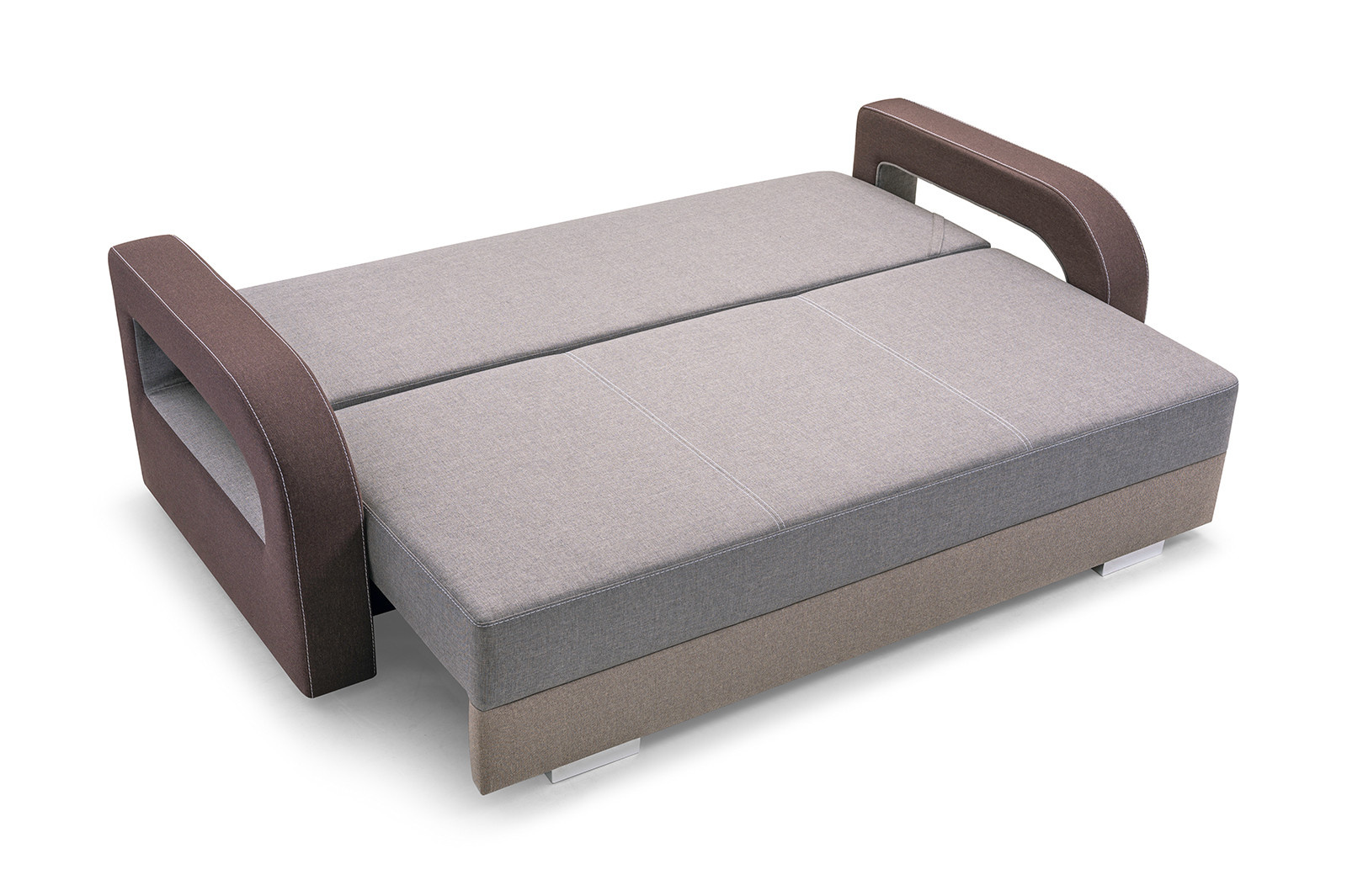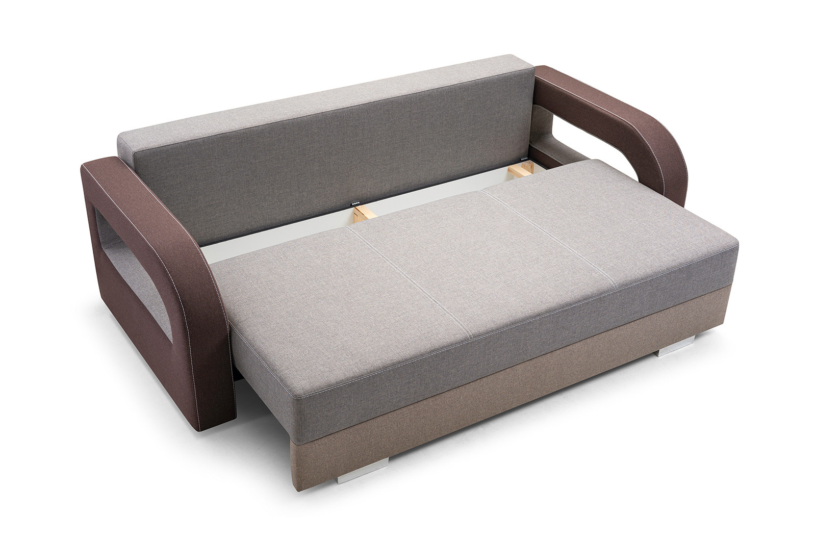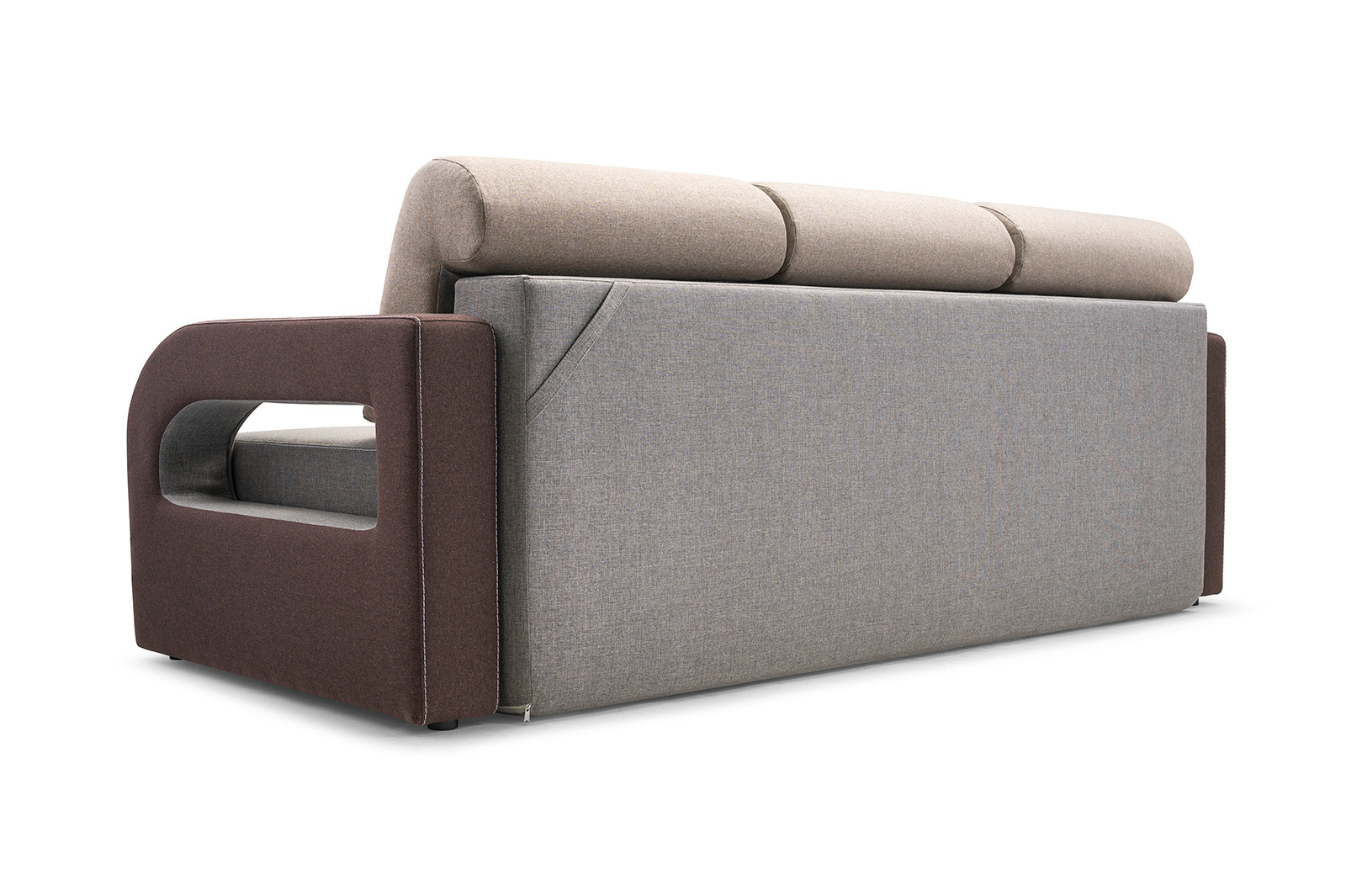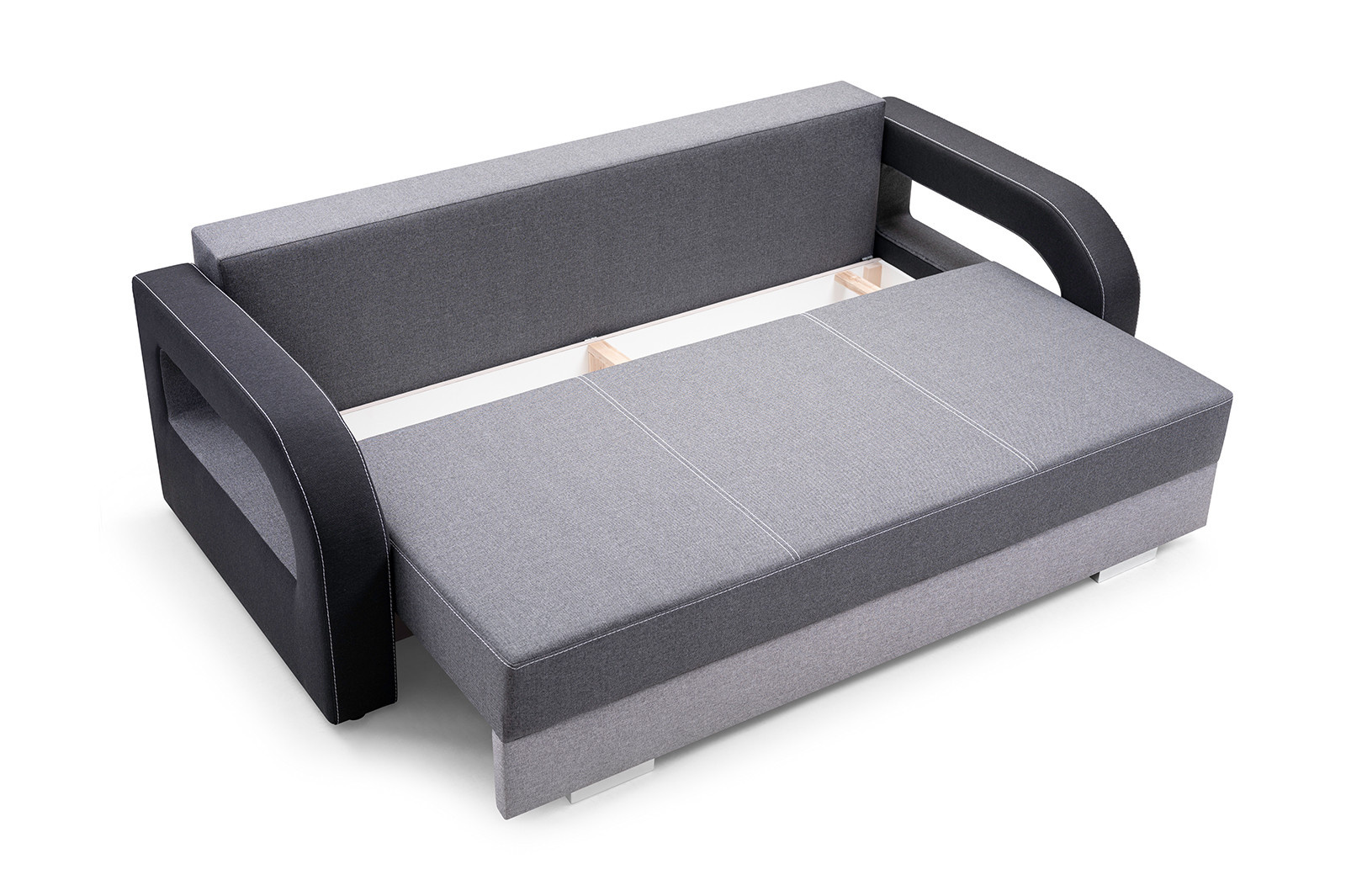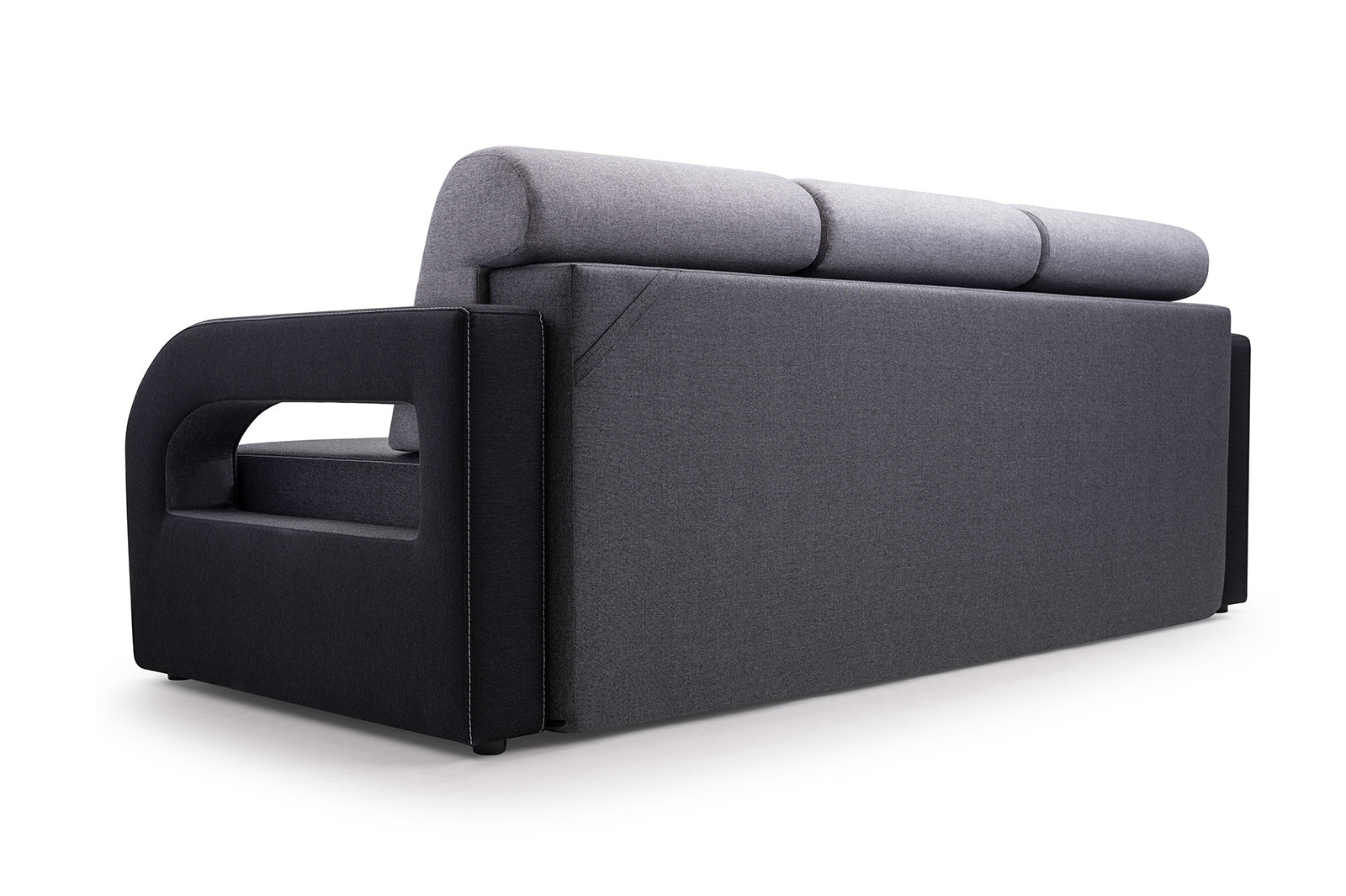 Trojmiestna pohovka LAURA je jednoduchý, ale moderne vyzerajúci kúsok, ktorý zaujme modernistickými výrezmi pod podrúčkami. Štýlová rozkladacia pohovka LAURA K je vybavená nielen úložným priestorom na lôžkoviny, ale aj automatickou rozkladacou pomôckou, vďaka ktorej je zloženie alebo rozloženie postele rýchle a jednoduché. Nábytok s dreveným rámom je umiestnený na pochrómovaných nohách, ktoré nielenže poskytujú dostatočnú stabilitu, ale zároveň dodávajú nábytku atraktívny dizajn. Pohovka môže byť čalúnená látkou v rôznych farebných prevedeniach. Tento voľne stojaci kus nábytku má aj čalúnenú zadnú časť, takže je vhodný nielen na umiestnenie k stene, ale aj do stredu obývačky alebo priestrannej obývačky. Moderná pohovka LAURA K s bočnicami je vyplnená bonellovými a vlnitými pružinami, ktoré zabezpečujú správnu pružnosť - napriek každodennému používaniu sa neobjavia žiadne deformácie ani preliačiny. Trojmiestna pohovka je kus nábytku, ktorý zaručuje pohodlie pri relaxácii pred televízorom alebo s knihou v ruke a zároveň prináša do miestnosti moderný dizajnový akcent.