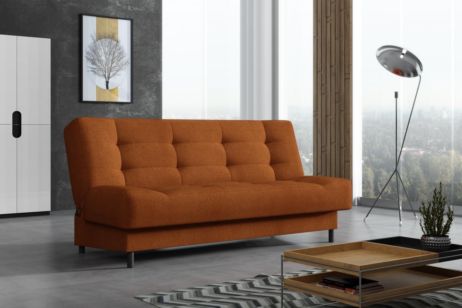 Pohovka Living je príjemným spojením elegancie, funkčnosti a priaznivej ceny. Je vyrobená v jednoduchom nadčasovom dizajne, ktorý sa hodí do každého interiéru. Umiestniť ju môžete do obývacej izby, ale je tiež vhodná napr. do študentskej izby, pracovne, alebo hosťovskej izby. Pohovka je rozkladacia a samozrejmosťou je aj nepostrádateľný úložný priestor. Jednoduchým rozložením pomocou systému klik-klak vznikne lôžko na občasné prespanie. Z dôvodu tohto rozkladu je pohovka vzadu očalúnená iba do krycej čalúnnickej látky. Vybrať si môžete z niekoľkých trendy odtieňov. Zobrazené doplnky a dekorácie nie sú v cene. Úvodná fotografia je ilustračná. Pohovka bude dodaná v poťahovej látke, ktorej vzorka je zobrazená v doplnkových fotografiách.