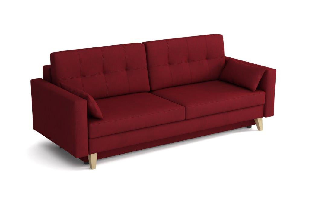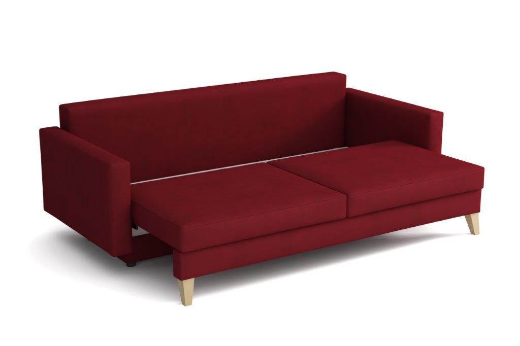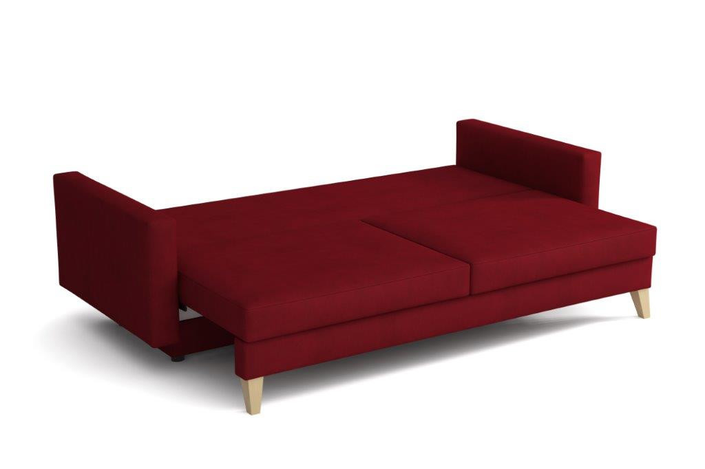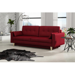 Pohovka Marina je krásny elegantný kúsok s nádychom RETRO dizajnu a dokonale zapadne do každého interiéru. Retro dizajn podčiarkujú skosené drevené nohy a látkové gombíky na podrúčke. Pohovka je rozkladacia a samozrejme je tu aj nepostrádateľný úložný priestor. Jednoduchým rozložením pomocou automatického stroja vznikne dostatočne priestranná posteľ na prespanie príležitostnej návštevy. Sedák je vyrobený z vlnitých pružín v kombinácii s bonellovými pružinami a kvalitnou PUR penou. Pohovka je celočalúnená, takže ju môžete umiestniť do priestoru. Výborne sa hodí do obývačky, pracovne alebo hosťovskej izby. Pohovku ponúkame v niekoľkých módnych farbách. Vyobrazené príslušenstvo a dekorácie nie sú zahrnuté v cene. Farby výrobku zobrazené na fotografii sa môžu mierne líšiť od skutočnosti.