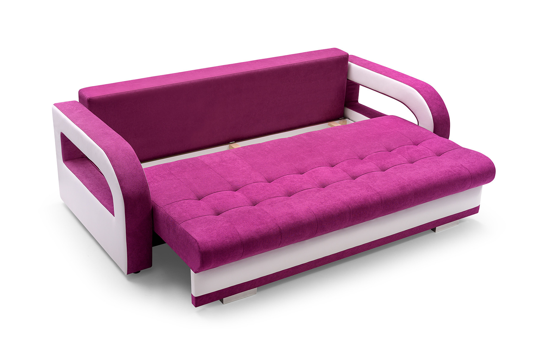 Modernistická pohovka Nina je štýlovo voľne stojaca a možno ju kombinovať s taburetkou Nina, ktorá je súčasťou súpravy. Taburetka sa dá použiť ako ďalšia plocha na sedenie aj ako podnožka - počas odpočinku na pohovke si na ňu budete môcť vyložiť nohy, čo vám umožní naplno relaxovať alebo si dokonca zdriemnuť po náročnom dni. Trojmiestna pohovka Nina je kus nábytku vybavený automatickým rozkladom, ktorý umožňuje rýchlu a efektívnu manipuláciu. Pohovka Nina je umiestnená na drevenom ráme - nábytok zostane pevný a stabilný aj pri každodennom používaní. Voľne stojaci kus nábytku je čalúnený látkou, ktorú si môžete vybrať zo širokej škály farieb. Pohovka s bočnicami zaujme štýlovým prešívaním a originálnymi výrezmi pod podrúčkami.