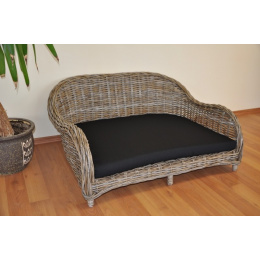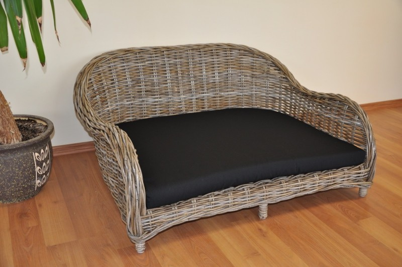Pohovka pre vášho psíka ručne pletená z ratanu kubu v prírodnej šedej farbe. Ratan kubu sa vyznačuje vysokou pevnosťou a odolnosťou. Pohovku dodávame vrátane mäkkého vankúša. | Veľkosť pohovky je 93x85x45 cm