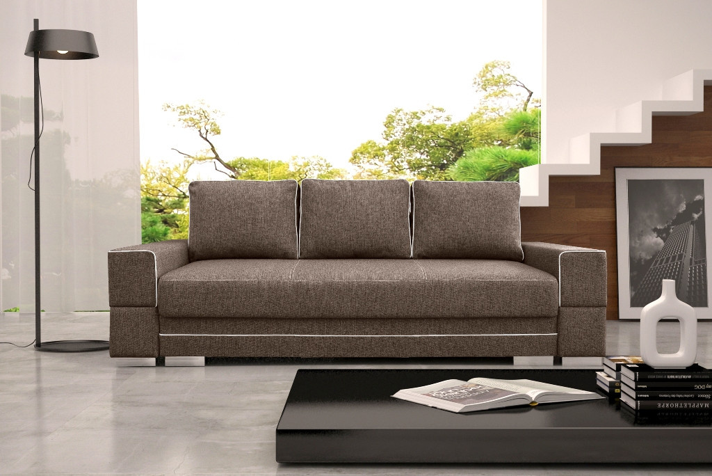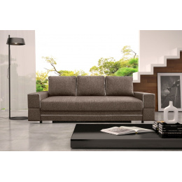 SAMANTA A je moderná rozkladacia pohovka, ktorá sa cez deň stane miestom odpočinku pre celú rodinu, zatiaľ čo v noci sa môže zmeniť na posteľ a zabezpečiť bezpečný a pohodlný spánok. Okrem funkcie spania je nábytok vybavený úložným priestorom na lôžkoviny, ktorý umožňuje uložiť prikrývky, periny a vankúše na jednom mieste. Aby bolo skladanie pohovky jednoduché a bezproblémové, bola doplnená o automatickú pomôcku na skladanie. Drevený rám trojmiestnej pohovky zaručuje primeranú odolnosť a pevnosť nábytku - sedák a operadlo sú vyplnené vlnitými pružinami a bonellovými pružinami, vďaka ktorým si kus nábytku zachová primeranú pružnosť a nebude mať nevzhľadné preliačiny. Čalúnený kus nábytku stojí na chrómových nožičkách, ktoré mu dodávajú originálny charakter. Tento voľne stojaci kus nábytku je kompletne čalúnený látkou vo vybranej farbe. Zaujímavým akcentom pohovky SAMANTA A je štýlové prešívanie na okrajoch vankúšov umiestnených na operadle a na konštrukcii pohovky.