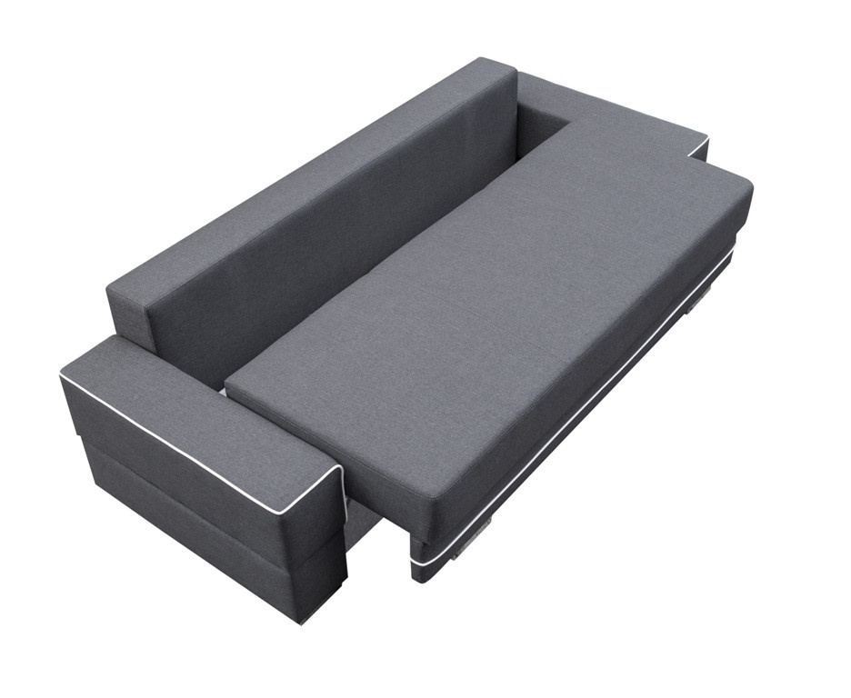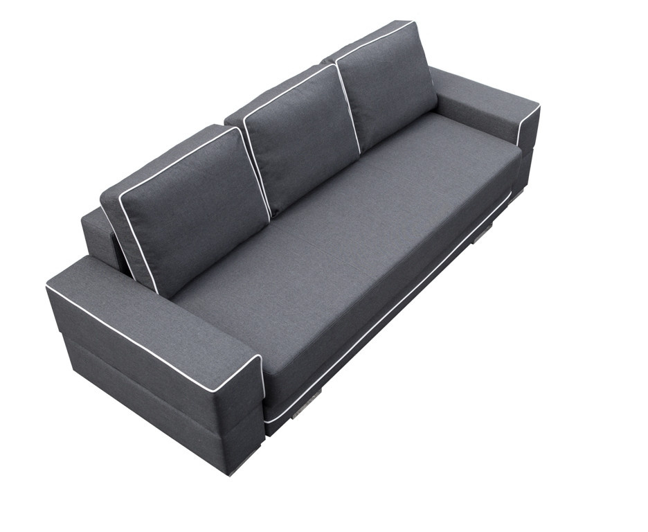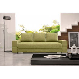 SAMANTA A je moderná rozkladacia pohovka, ktorá sa cez deň stane miestom odpočinku pre celú rodinu, zatiaľ čo v noci sa môže zmeniť na posteľ a zabezpečiť bezpečný a pohodlný spánok. Okrem funkcie spania je nábytok vybavený úložným priestorom na lôžkoviny, ktorý umožňuje uložiť prikrývky, periny a vankúše na jednom mieste. Aby bolo skladanie pohovky jednoduché a bezproblémové, bola doplnená o automatickú pomôcku na skladanie. Drevený rám trojmiestnej pohovky zaručuje primeranú odolnosť a pevnosť nábytku - sedák a operadlo sú vyplnené vlnitými pružinami a bonellovými pružinami, vďaka ktorým si kus nábytku zachová primeranú pružnosť a nebude mať nevzhľadné preliačiny. Čalúnený kus nábytku stojí na chrómových nožičkách, ktoré mu dodávajú originálny charakter. Tento voľne stojaci kus nábytku je kompletne čalúnený látkou vo vybranej farbe. Zaujímavým akcentom pohovky SAMANTA A je štýlové prešívanie na okrajoch vankúšov umiestnených na operadle a na konštrukcii pohovky.