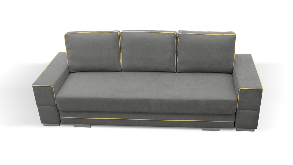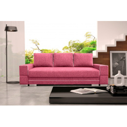 SAMANTA A je moderná rozkladacia pohovka, ktorá sa cez deň stane miestom odpočinku pre celú rodinu, zatiaľ čo v noci sa môže zmeniť na posteľ a zabezpečiť bezpečný a pohodlný spánok. Okrem funkcie spania je nábytok vybavený úložným priestorom na lôžkoviny, ktorý umožňuje uložiť prikrývky, periny a vankúše na jednom mieste. Aby bolo skladanie pohovky jednoduché a bezproblémové, bola doplnená o automatickú pomôcku na skladanie. Drevený rám trojmiestnej pohovky zaručuje primeranú odolnosť a pevnosť nábytku - sedák a operadlo sú vyplnené vlnitými pružinami a bonellovými pružinami, vďaka ktorým si kus nábytku zachová primeranú pružnosť a nebude mať nevzhľadné preliačiny. Čalúnený kus nábytku stojí na chrómových nožičkách, ktoré mu dodávajú originálny charakter. Tento voľne stojaci kus nábytku je kompletne čalúnený látkou vo vybranej farbe. Zaujímavým akcentom pohovky SAMANTA A je štýlové prešívanie na okrajoch vankúšov umiestnených na operadle a na konštrukcii pohovky.