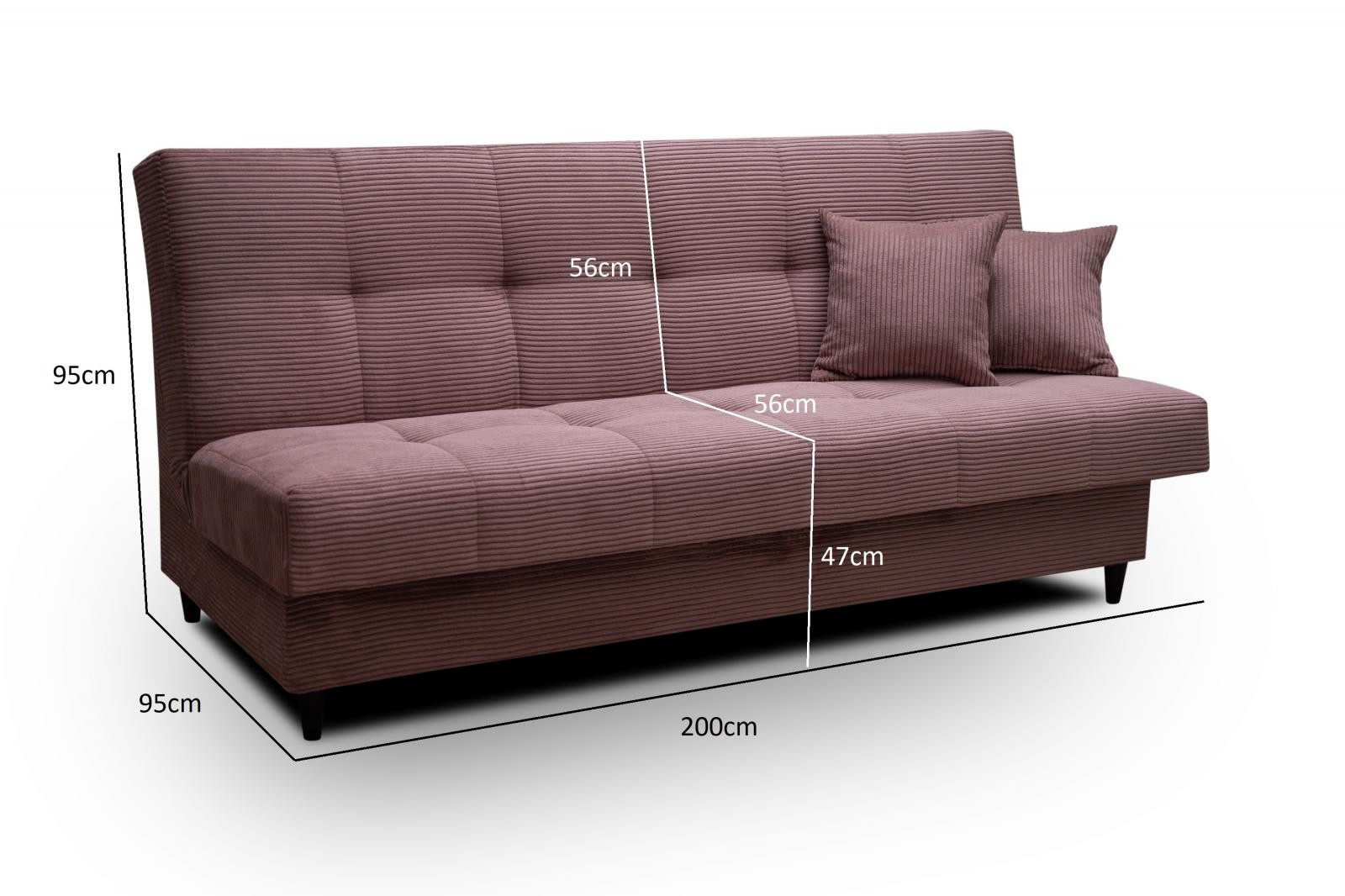Veľkou prednosťou tejto pohovky je zvýšená výška sedu 47 cm. Vďaka svojim rozmerom nezaberie veľa miesta a je vhodná aj do malých izieb. Výplň sedáku tvoria pružiny bonell s kvalitnou PUR penou. Pohovka je rozkladacia a samozrejmosťou je aj nepostrádateľný úložný priestor. Jednoduchým rozložením pomocou systému klik-klak vznikne lôžko na občasné prespanie. Pohovka je potiahnutá kvalitnou poťahovou látkou Poso, ktorá sa vyznačuje zamatovo jemným povrchom a svojím typickým vzhľadom pripomína manšester. Vybrať si môžete z niekoľkých trendy odtieňov. Správna farba poťahovej látky je na úvodnej fotografii. Fotografie rozkladu sú ilustračné.Tovar sa dodáva bez príslušenstva a dekorácií (napr. textilných doplnkov, spotrebičov, vodovodných batérií, matracov atď.), preto nie sú zahrnuté v cene. Tovar sa zvyčajne dodáva v demontovanom stave v závislosti od povahy tovaru. Fotografie môžu byť ilustračné a farba výrobku nemusí zodpovedať skutočnosti z dôvodu nastavenia monitora a prevodu do elektronickej podoby. V prípade akýchkoľvek nejasností alebo otázok kontaktujte naše klientske centrum: pegas@nabytok-pegas.sk , alebo zavolajte na číslo 940 499 552 .