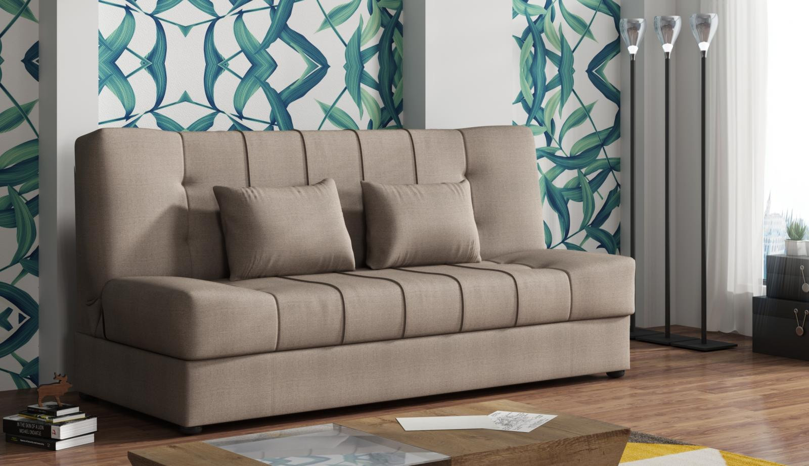 Pohovka Sun je príjemnou kombináciou elegancie, funkčnosti a atraktívnej ceny. Dokonale doplní dizajn vašej obývačky, ale je vhodný aj napr. pre. pre študentskú izbu, pracovňu alebo izbu pre hostí. Pohovka je rozkladacia pohovka. Jednoduchým rozložením pomocou kľukového systému získate posteľ na príležitostné prenocovanie návštev. Samozrejmosťou je aj praktický úložný priestor , ktorý môžete využiť na posteľnú bielizeň. Pohovku ponúkame v niekoľkých módnych farbách. Cena zahŕňa 2 dekoračné vankúše. Ostatné zobrazené príslušenstvo a dekorácie nie sú súčasťou balenia. Zobrazenie farieb na fotografii sa môže líšiť od skutočnosti.