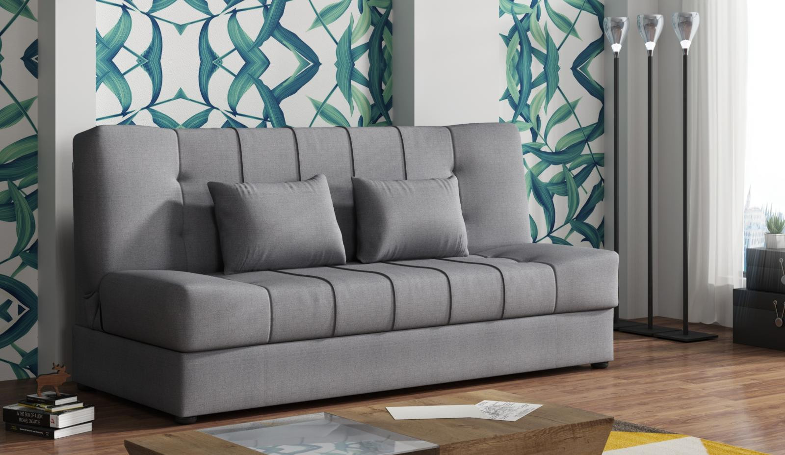 Pohovka Sun je príjemnou kombináciou elegancie, funkčnosti a atraktívnej ceny. Dokonale doplní dizajn vašej obývačky, ale je vhodný aj napr. pre. pre študentskú izbu, pracovňu alebo izbu pre hostí. Pohovka je rozkladacia pohovka. Jednoduchým rozložením pomocou kľukového systému získate posteľ na príležitostné prenocovanie návštev. Samozrejmosťou je aj praktický úložný priestor , ktorý môžete využiť na posteľnú bielizeň. Pohovku ponúkame v niekoľkých módnych farbách. Cena zahŕňa 2 dekoračné vankúše. Ostatné zobrazené príslušenstvo a dekorácie nie sú súčasťou balenia. Zobrazenie farieb na fotografii sa môže líšiť od skutočnosti.