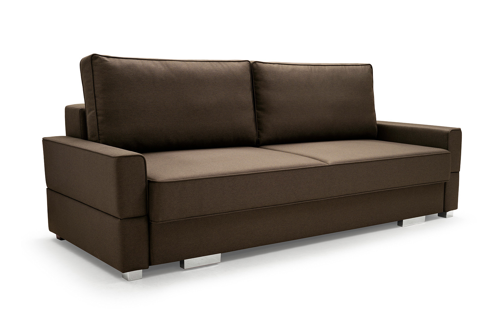 Dvojmiestna pohovka SUZANA je čalúnená pohovka, ktorej farby si môžete vybrať zo širokej škály farieb podľa individuálnych preferencií a vzhľadu interiéru. Štýlová pohovka stojí na chrómových nohách, ktoré jej dodávajú moderný nádych. Pohovka s bočnicami je vybavená funkciou spania, ktorá umožňuje tento kus nábytku kedykoľvek rozložiť - bude praktickým kusom nábytku pre hostí na prenocovanie, ako aj príležitostným lôžkom, ak bude umiestnená v obývacej izbe. SUZANA je vybavená priestranným úložným priestorom na lôžkoviny, v ktorom sú všetky prikrývky, periny a vankúše na jednom mieste. Sedák a dva zadné vankúše sú vyrobené z vlnitých pružín v kombinácii s penou T-30 - použité materiály zabezpečujú pružnosť nábytku. Sedadlo sa pod používateľom neprehýba, nevznikajú na ňom preliačiny ani deformácie. Moderná pohovka SUZANA bude nielen pohodlným kusom nábytku do obývačky, ale aj prvkom, ktorý podčiarkne nadčasový charakter usporiadania obývačky.