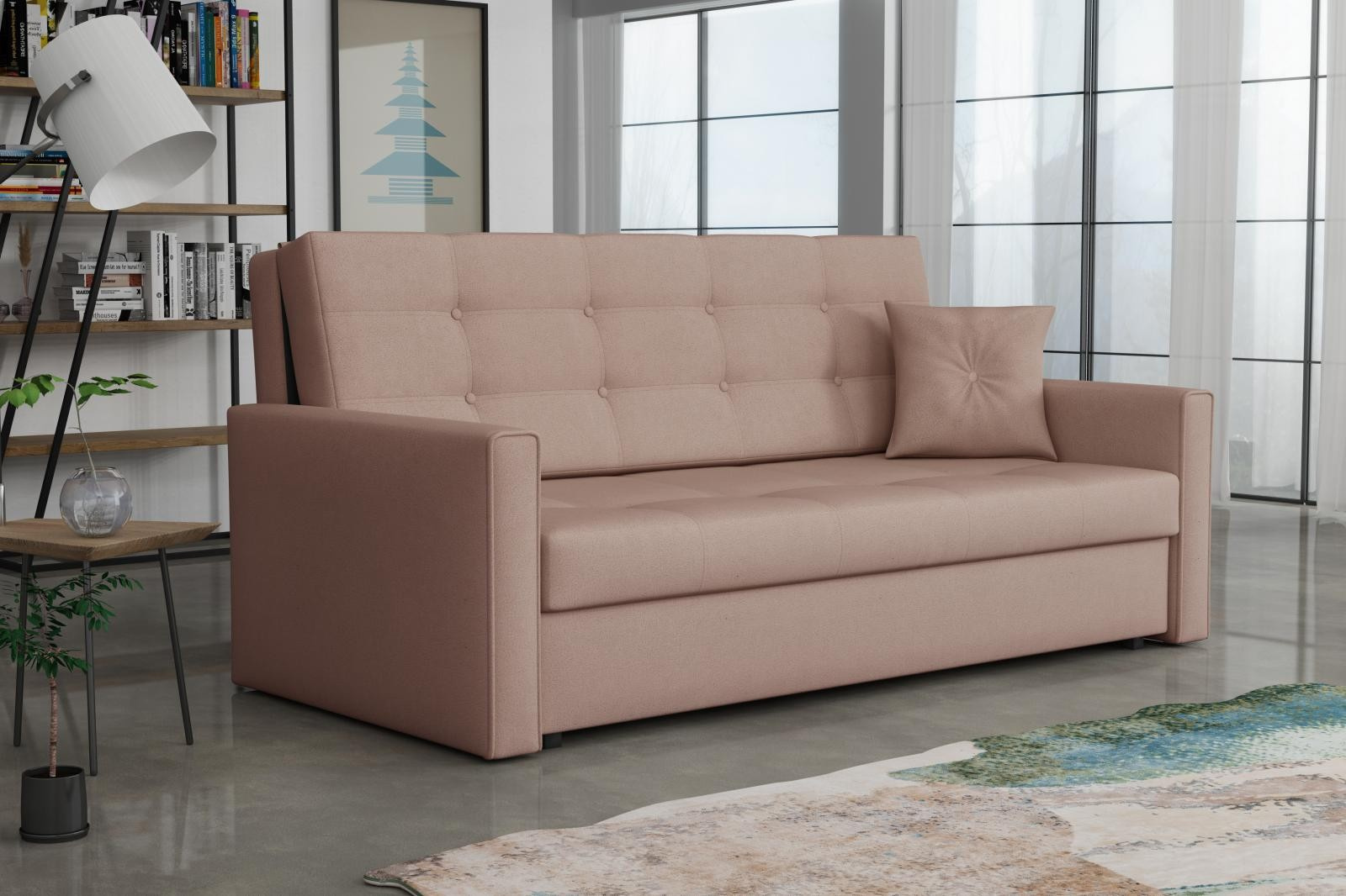 Rozkladacia pohovka Vivian je vďaka svojim rozmerom vhodná aj do menších izieb. Je vyrobená v jednoduchom a zároveň elegantnom dizajne, ktorý sa hodí do všetkých interiérov. Môžete ju umiestniť do obývacej, detskej, študentskej, alebo hosťovskej izby. Jednoduchým rozložením pomocou automatu, získate lôžko na príležitostné prespanie Vašej návštevy. Výplň sedáku tvoria vlnité pružiny v kombinácii s PUR penou. Pohovka je potiahnutá kvalitnou látkou a ponúkame ju v niekoľkých trendy odtieňoch. Pohovka disponuje aj nepostrádateľným úložným priestorom, ktorý využijete napr. na deku a vankúš. V cene pohovky je 1 dekoračný vankúš. Ostatné zobrazené dekorácie nie sú v cene.