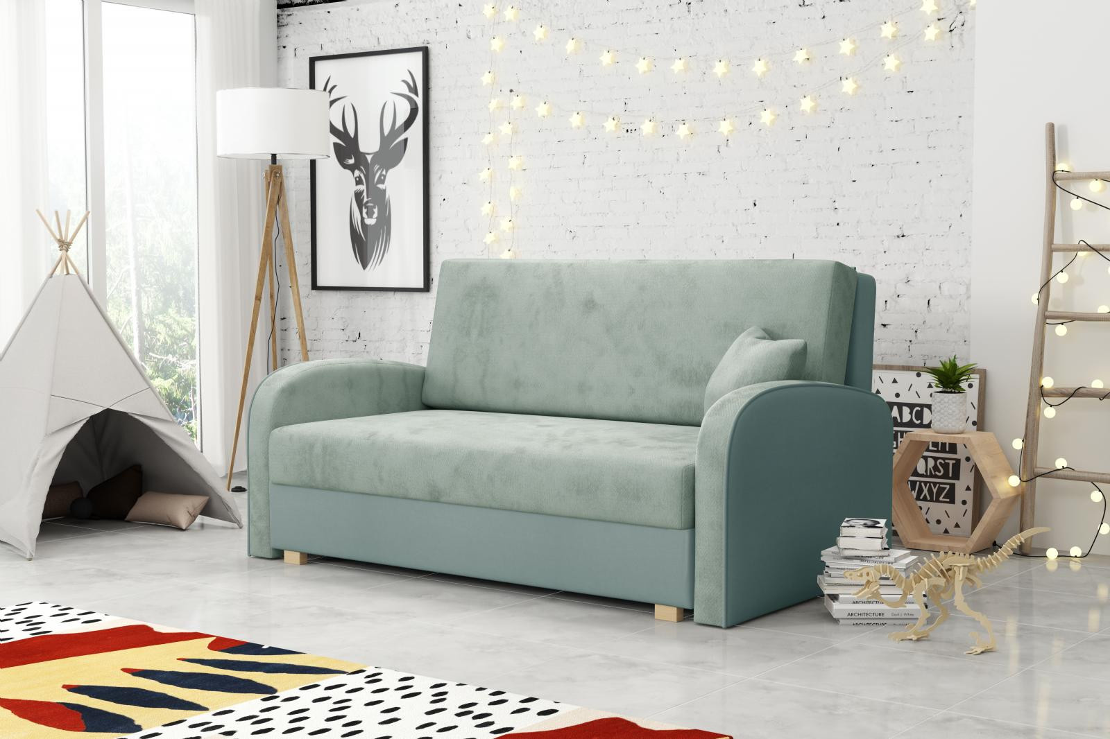 Vďaka svojim rozmerom je rozkladaciapohovka Vivian vhodná aj do menších miestností. Uplatnenie nájde nielen v obývacej izbe, ale aj v detskej, študentskej alebo hosťovskej izbe. Jednoduchým rozložením pomocou automatu získate posteľ na príležitostné prenocovanie návštevníkov. Výplň sedáku tvoria vlnité pružiny v kombinácii s PUR penou. Pohovka je čalúnená kvalitnou látkou a je k dispozícii v niekoľkých módnych odtieňoch. pohovka má aj nepostrádateľný úložný priestor, ktorý môžete využiť napr. na prikrývku a vankúš. Cena zahŕňa 1 dekoračný vankúš. Ostatné zobrazené dekorácie nie sú súčasťou balenia.