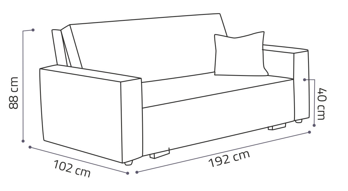 Pohovka je vhodná do detskej, študentskej alebo hosťovskej izby. Jednoduchým rozložením pomocou stroja získate posteľ na príležitostné prenocovanie návštevy alebo kamaráta vašich detí. Výplň sedáku tvoria vlnité pružiny v kombinácii sPUR penou. pohovka je čalúnená kvalitnou látkou s možnosťou výberu z niekoľkých módnych odtieňov. Pohovka má aj nepostrádateľný úložný priestor, ktorý môžete využiť napr. na prikrývku a vankúš. Ostatné zobrazené príslušenstvo a dekorácie nie sú súčasťou balenia. Zobrazenie farieb na fotografii sa môže líšiť od skutočnosti.