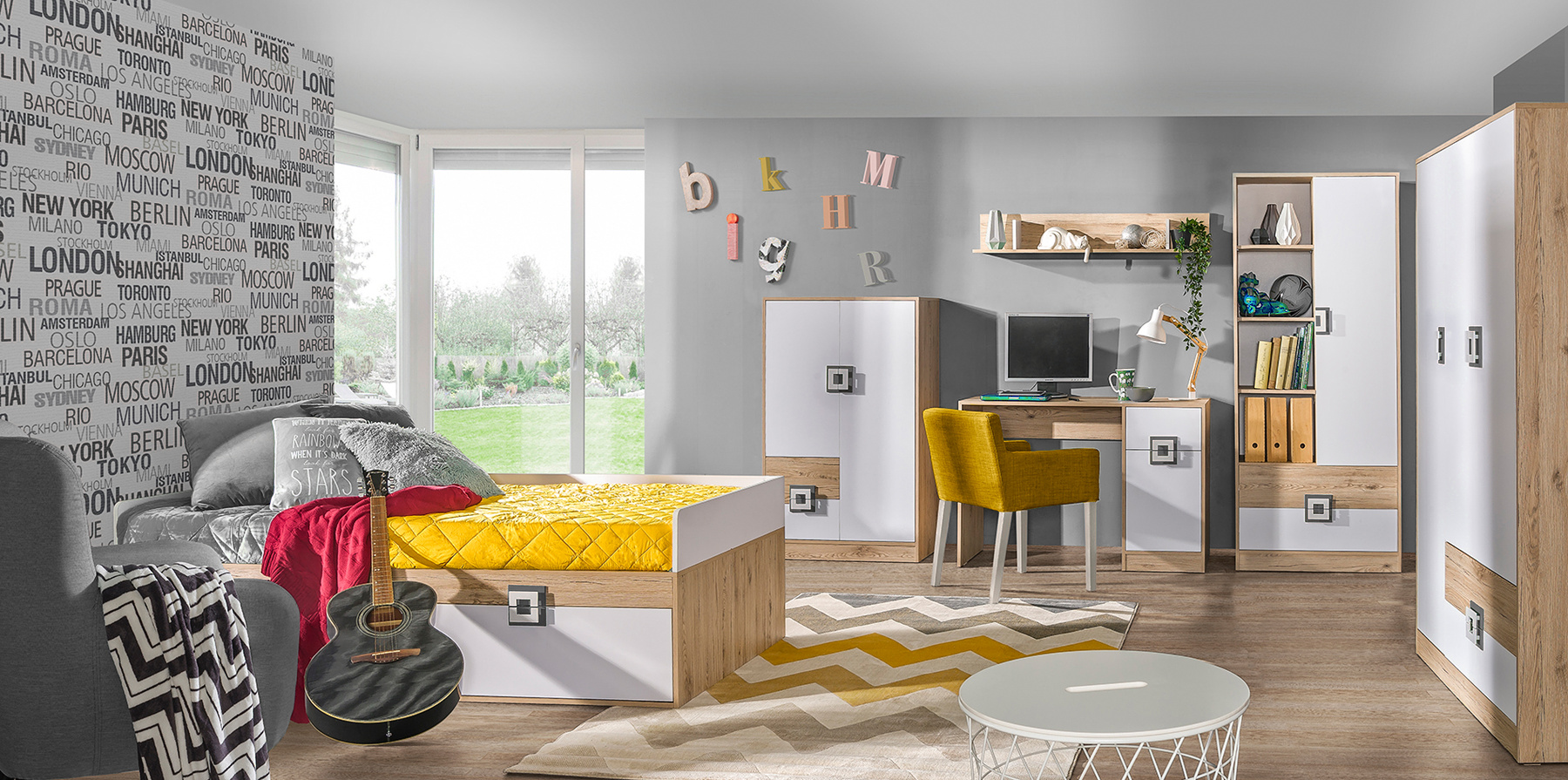 Nábytok GULIVER je modernou inováciou v oblasti nábytku pre deti a mládež a je k dispozícii v bielej farbe korpusu s 5 farebnými variantmi dvierok a 6 možnými farbami úchytiek na výber. Všetky komponenty si môžete zakúpiť samostatne a vytvoriť si tak vlastné plnohodnotné využitie priestoru miestnosti.