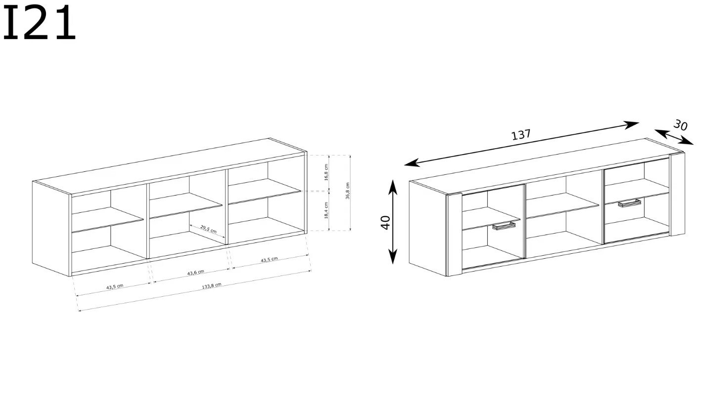 Závesná polica z kolekcie Indianapolis, ktorá sa hodí do miestnosti a doplní ju. Má sklenené dvierka a police, vďaka ktorým je úžasná. Polica má kovové úchytky a možnosť zahrnúť LED osvetlenie. Namiesto sklenených čiel možno použiť plné z dosiek. Je k dispozícii v troch farbách.
