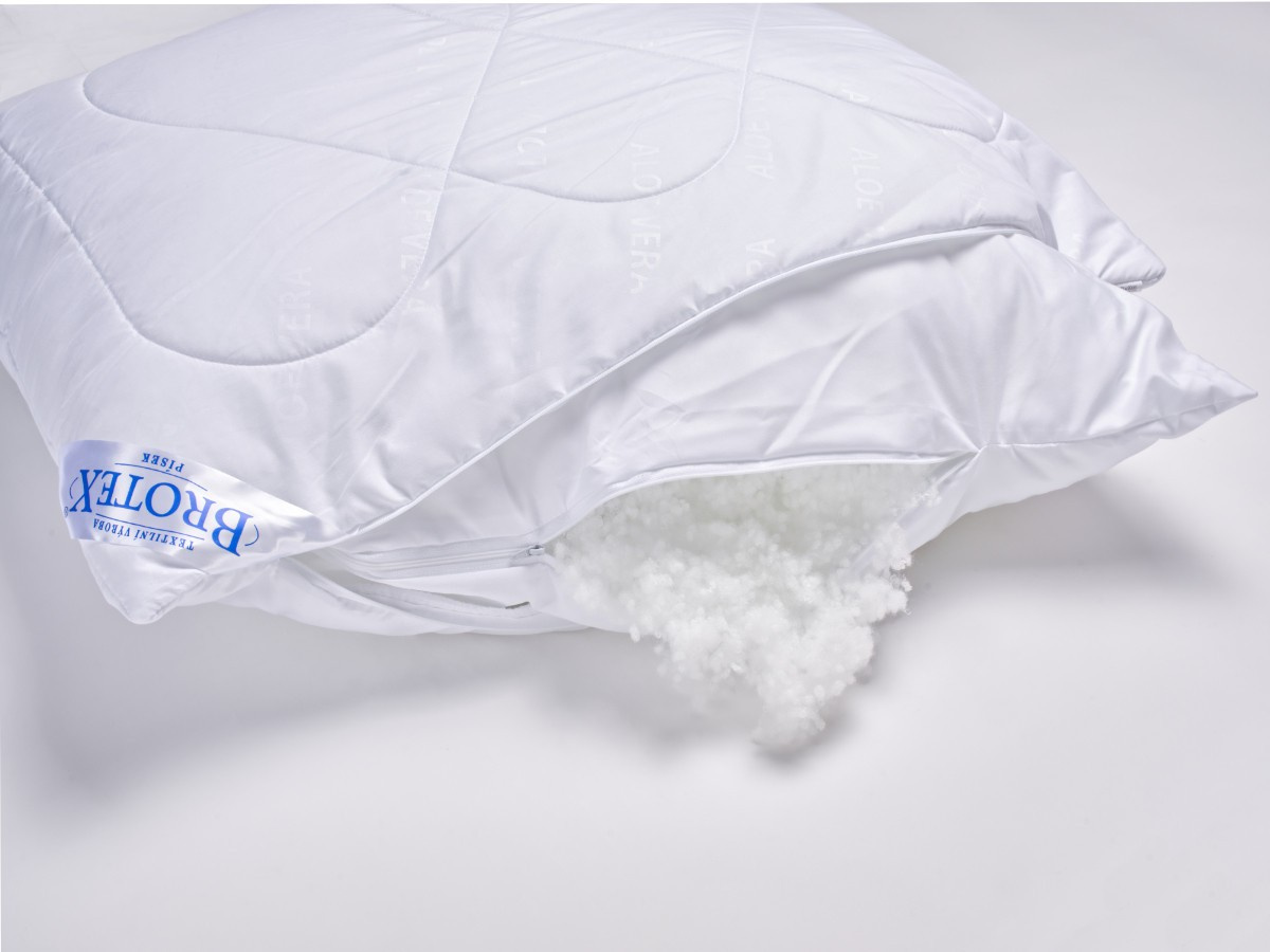 Vankúše sa vďaka týmto kvalitným guličkám dajú ľahko naklepať a nemenia tvar. Guľôčkové duté vlákno je vo vnútri samostatného poťahu so zipsom, ktorý je vložený do prešívaného korpusu tiež so zipsom. Jedná sa o veľmi praktický výrobok, kde je možnosť samostatného vyprania korpusu bez výplne, ktorá sa vďaka povlaku navyše, ľahko z korpusu vankúša vyberie. Oba poťahy sú vybavené zipsovým uzáverom, pre možnosť doplnenia alebo odobratia časti výplne podľa potreby zákazníka. Povrchovým materiálom je 100% polyester - mikrovlákno s výťažkami z rastliny Aloe Vera. Aloe Vera priaznivo pôsobí na ľudskú pokožku, má schopnosť zmierňovať bolesti kĺbov a svalov. Počas používania postupne uvoľňuje extrakty zo svojich vlákien, ktoré majú výrazný antibakteriálny efekt, a preto bezpečne zaručia hubenie baktérií a roztočov. Prispieva k uvoľneniu tela, relaxácii a ničím nerušenému pokojnému spánku. Vankúš je vhodný pre alergikov a astmatikov.Vankúš sa dá prať v automatickej práčke do 95°C a potom sušiť v bubnovej sušičke na zníženú teplotu.