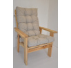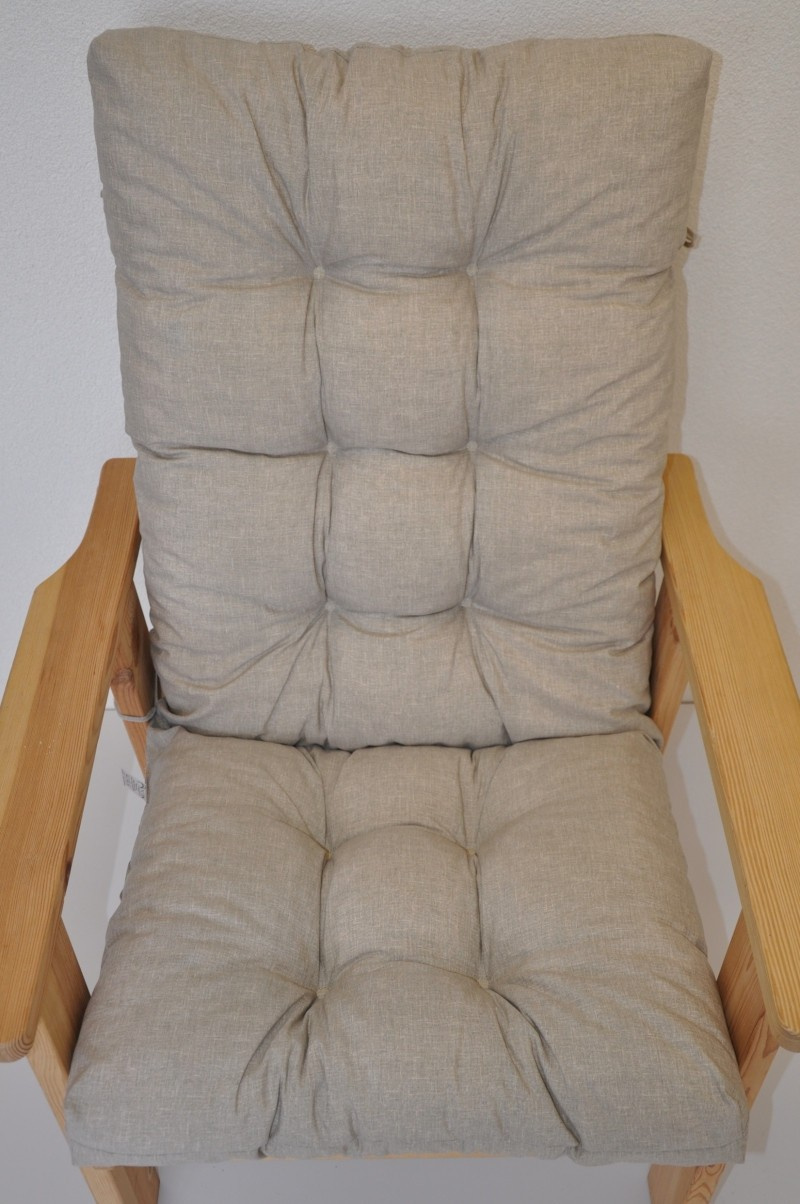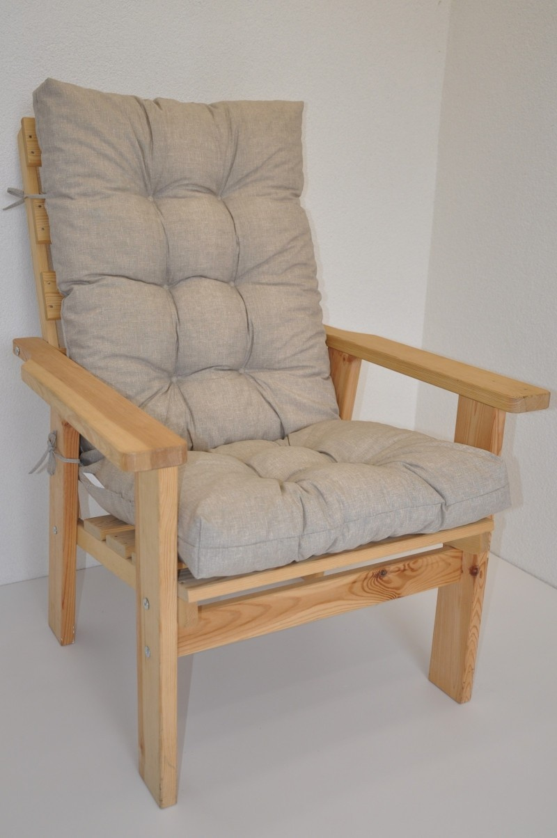 Samostatný poduška na drevené záhradné kreslo s vysokým operadlom. | Univerzálny poduška na záhradné kreslo s vysokým operadlom. Poduška je vhodná na rôzne záhradné drevené kreslá predávané na našom trhu. Šírka polstru je 56 cm. Celková dĺžka polstru je 120 cm. Polster je prešitý v mieste delenia na sedaciu a operadlovú časť. Hĺbka sedacej časti je 47 cm a výška operadlovej časti je 73 cm. Polster je plnený drveným molitanom. Na výrobu polstru je použitá kvalitná látka a štandardom je vysoká kvalita spracovania. Polster je vyrobený na Slovensku z kvalitnej látky a vyznačuje sa vysokou kvalitou spracovania.