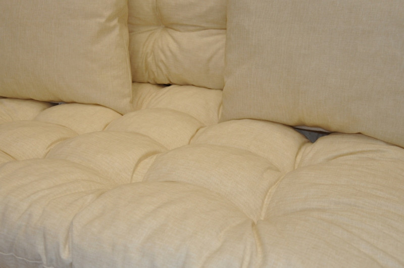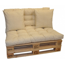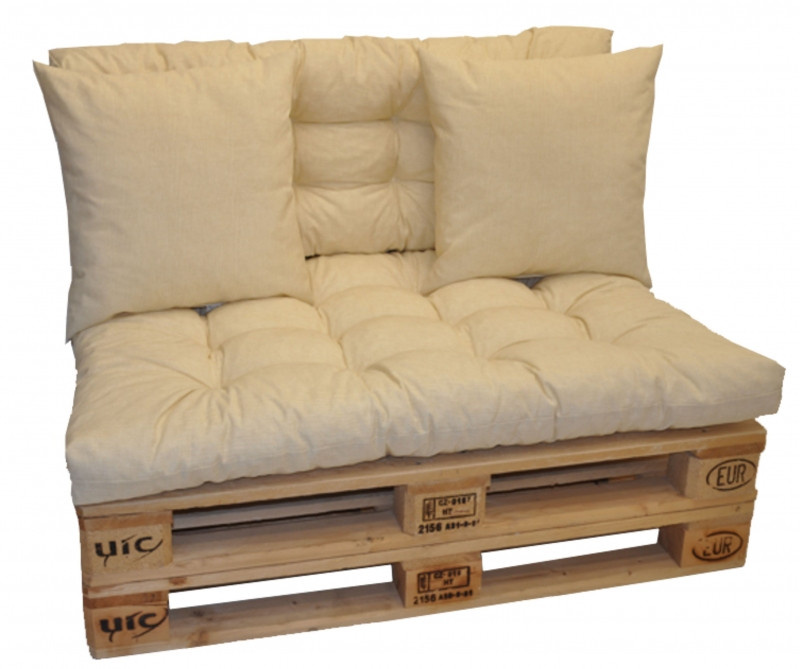Súprava vankúšov na sedenie z paliet pre 2 osoby. | Sada vankúšov na sedenie na paletách. Súprava vankúšov obsahuje: - sedací vankúš s rozmermi 120x80 cm - opierkový vankúš s rozmermi 120x50 cm - 2 vankúše s rozmermi 45x45 cm Vankúše sú vyrobené z vysoko kvalitnej látky. Sú vyplnené drvenou penou. Hrúbka vankúšov je približne 10 cm. Tieto podložky vyrábame v našej podnikovej dielni. Na kvalitu nášho spracovania sme veľmi hrdí. Všimnite si prešité rohy a kvalitné šitie na profesionálnych prešívacích strojoch. Sedák je prešitý na dvanástich miestach, čo zaručuje pohodlné sedenie a vankúše netlačia. U nás si môžete byť istí, že nám záleží na kvalite a že naše výrobky aj sami testujeme (nielen predávame).