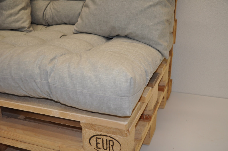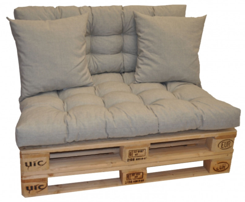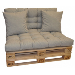 Súprava vankúšov na sedenie z paliet pre 2 osoby. | Sada vankúšov na sedenie na paletách. Súprava vankúšov obsahuje: - sedací vankúš s rozmermi 120x80 cm - opierkový vankúš s rozmermi 120x50 cm - 2 vankúše s rozmermi 45x45 cm Vankúše sú vyrobené z vysoko kvalitnej látky. Sú vyplnené drvenou penou. Hrúbka vankúšov je približne 10 cm. Tieto podložky vyrábame v našej podnikovej dielni. Na kvalitu nášho spracovania sme veľmi hrdí. Všimnite si prešité rohy a kvalitné šitie na profesionálnych prešívacích strojoch. Sedák je prešitý na dvanástich miestach, čo zaručuje pohodlné sedenie a vankúše netlačia. U nás si môžete byť istí, že nám záleží na kvalite a že naše výrobky aj sami testujeme (nielen predávame).